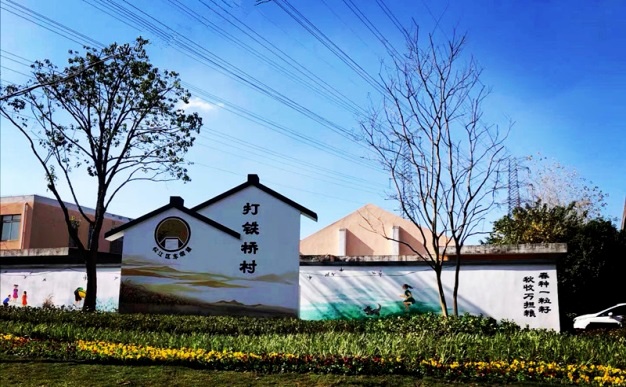 打铁桥村位于松江车墩镇西南片区,以“我和我的家乡”为主题,结合水稻四季生长过程,绘制春播、夏种、秋收、冬藏系列文化墙。