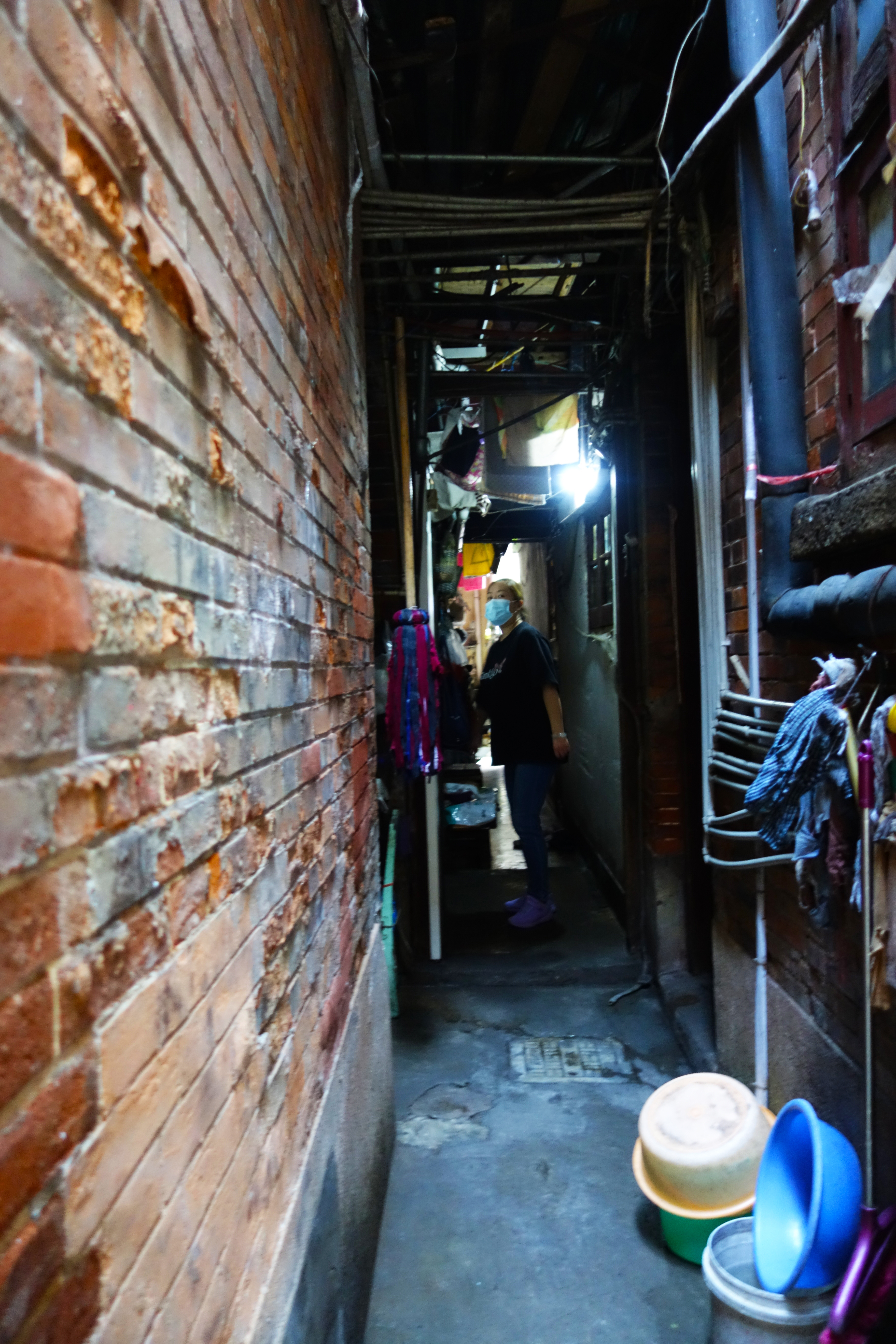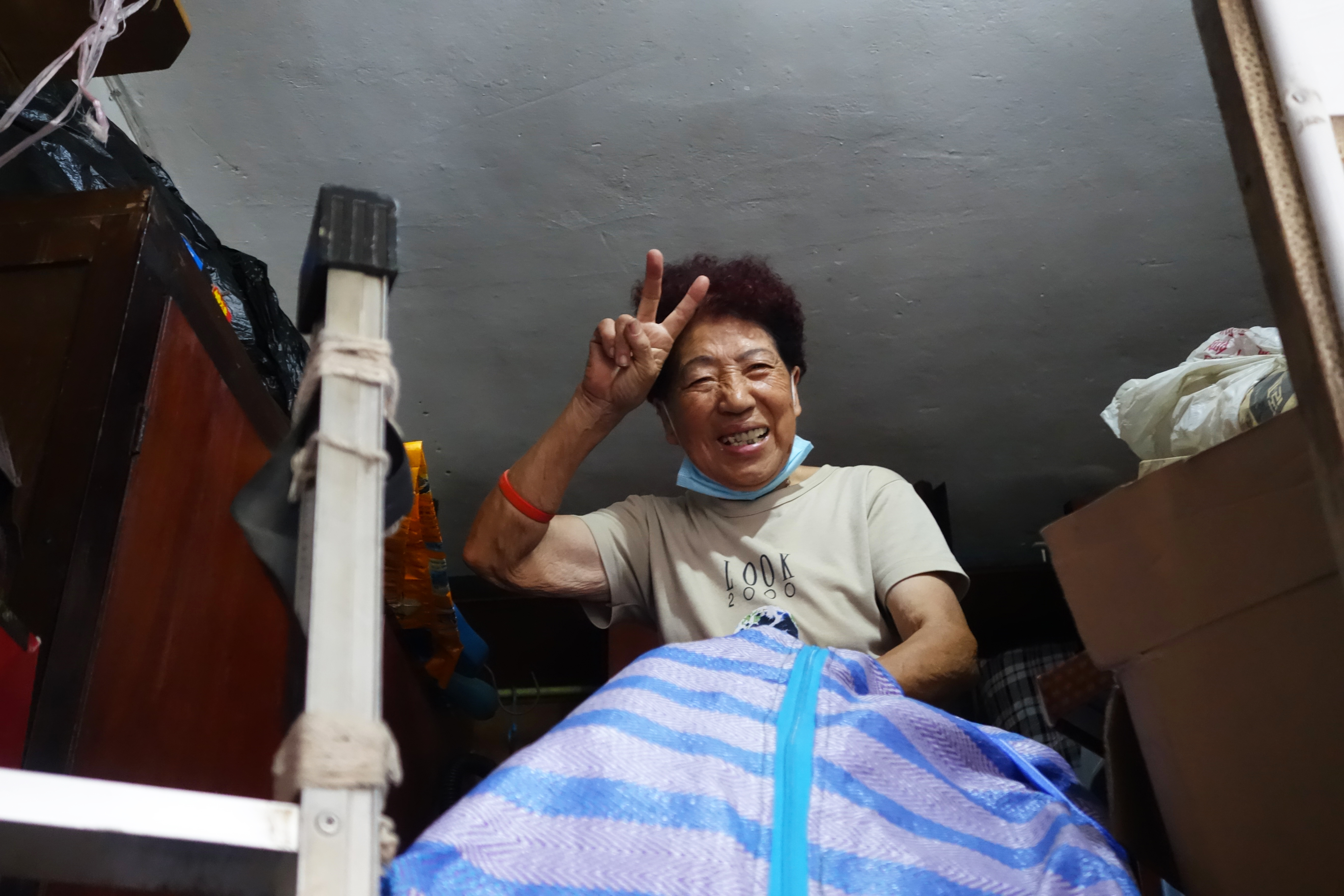 从东台路进,沿着蜿蜒的小弄堂一路向东,拐入一条一人宽的小通道,木楼梯向上,记者跟随居委会工作人员来到了张老伯家。