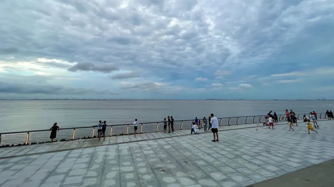 景观道建成后,成为附近居民休闲观景的好去处。南门港段的优美步道,已经成为崇明的地标之一。眼下正值防汛关键期,降水密集,新建环岛防汛堤标开始显现防汛巨大作用。