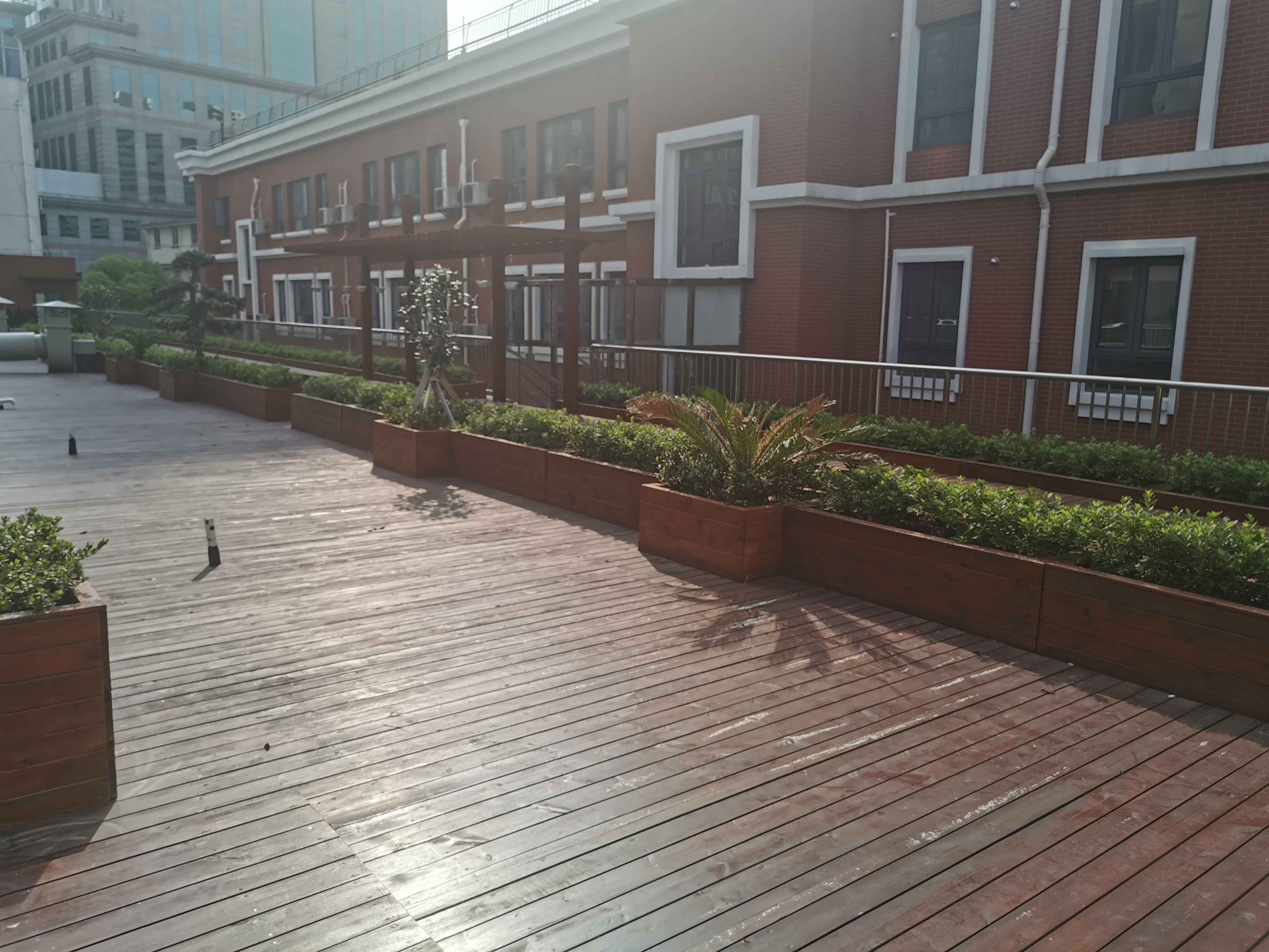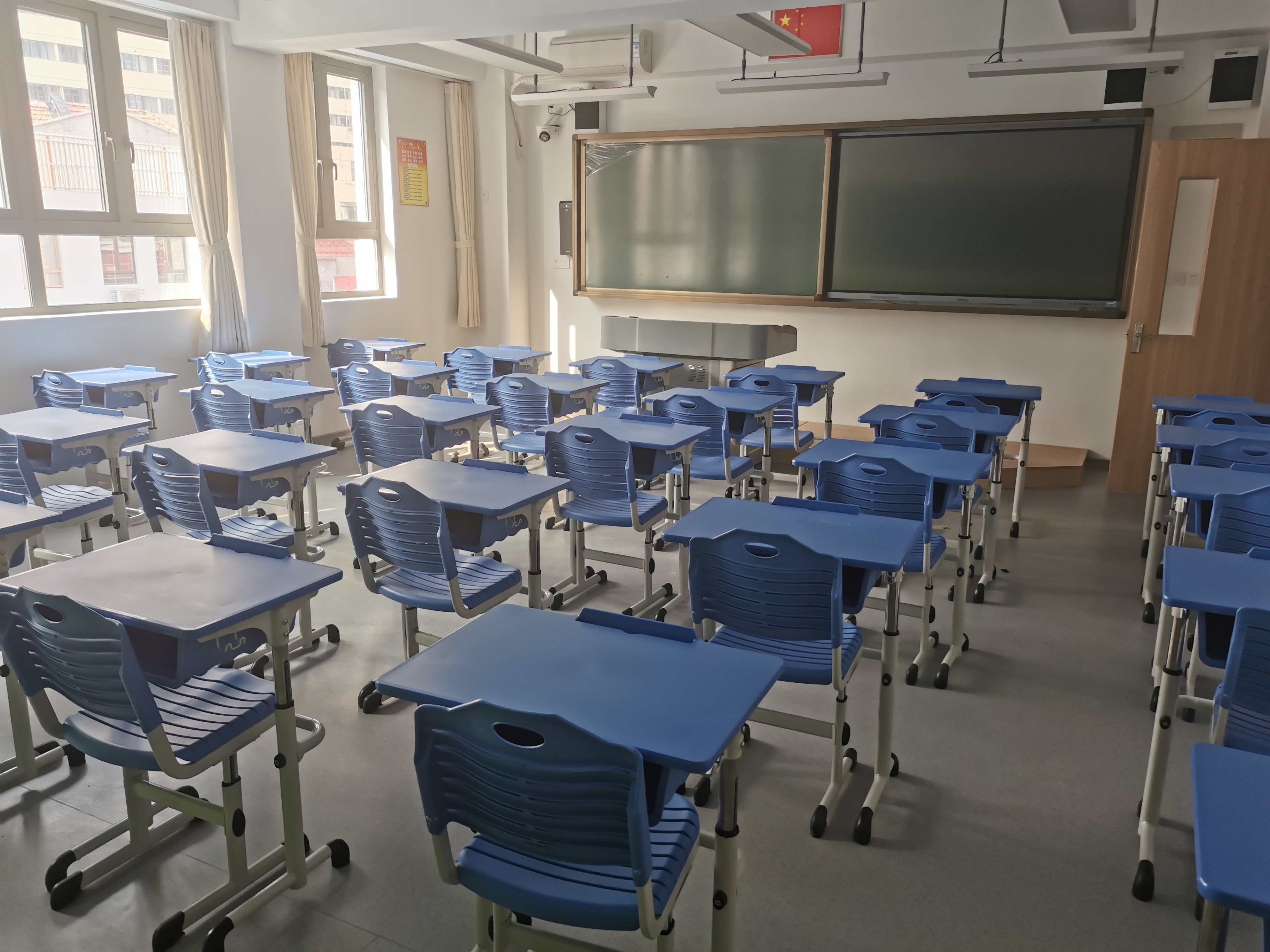 上海理工大学附属储能中学抓住北校区校园加固的契机,对校园功能进行了全面升级和改造。教室宽敞明亮,采光和光照度完全达到相关要求。教室里,每位学生都配置有储物箱,解决了长期以来学生在校放置书籍及学习用品空间不足的难题。新校舍中,各专用教室也按照最新要求进行改造,并根据课程教学改革的要求配备了最新的仪器和设备。学校还利用走廊中的公共空间打造朗读亭,为有兴趣的学生提供更加丰富的活动空间。针对学校居于闹市区,活动空间十分有限的现状,学校充分挖掘楼顶空间,将南楼的六楼楼顶开辟为广播操场地,北楼三楼楼顶开设屋顶花园供师生休闲活动。