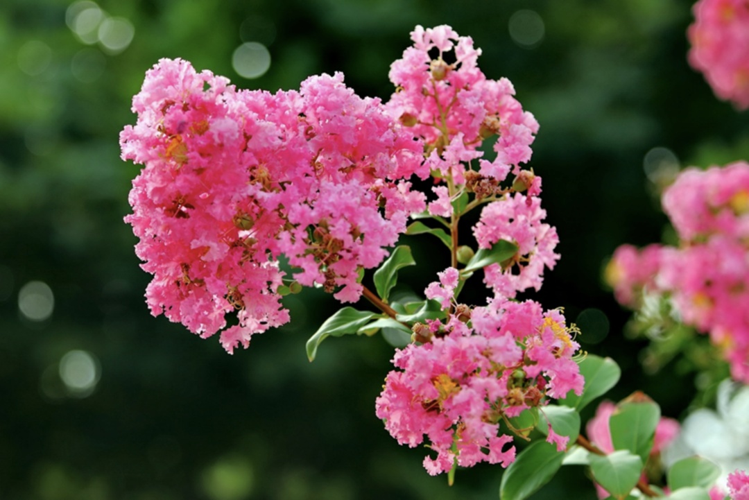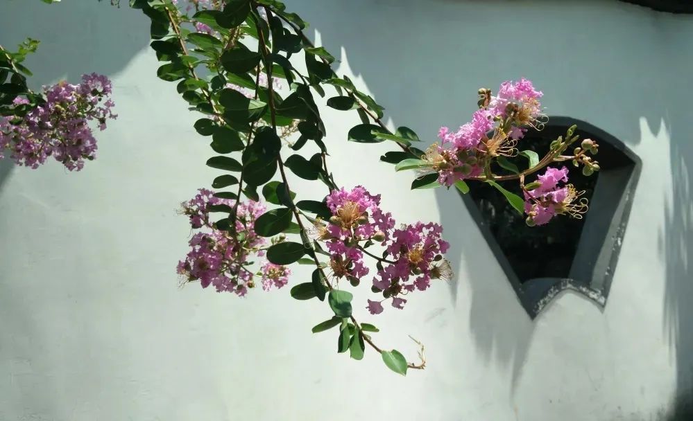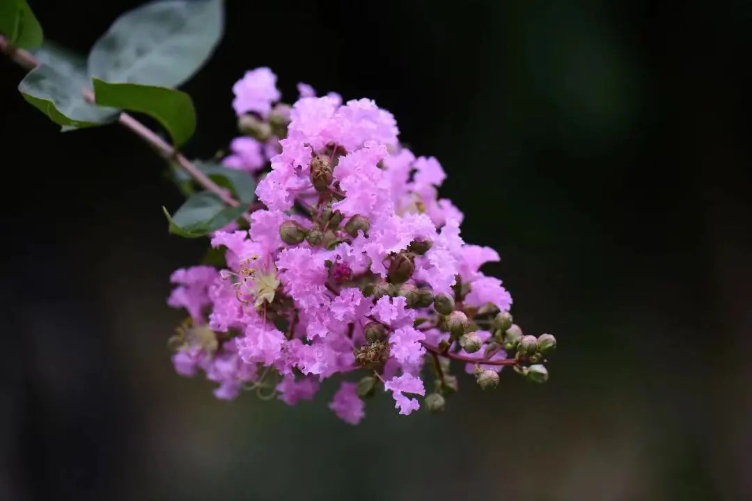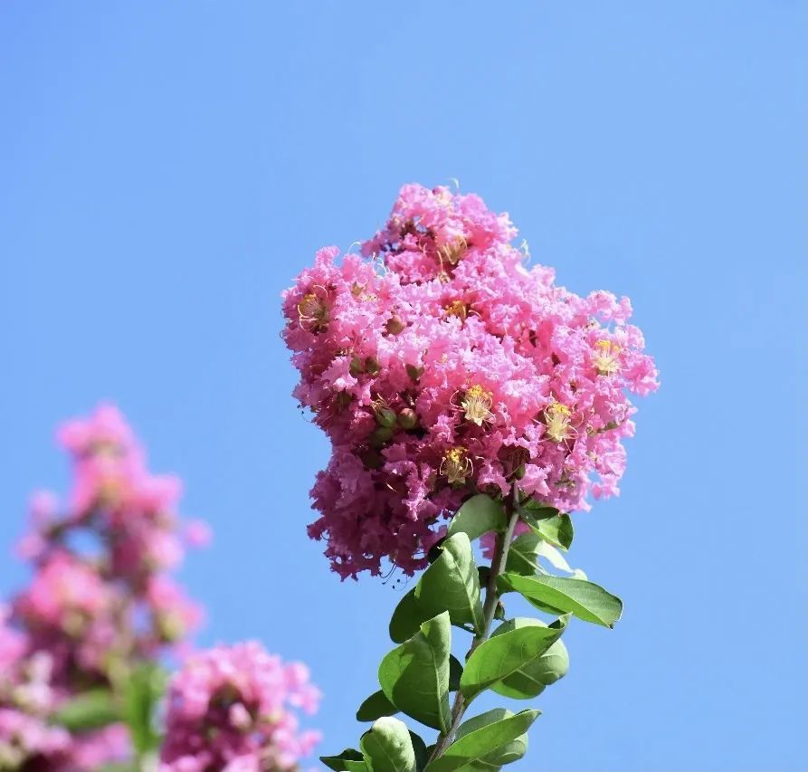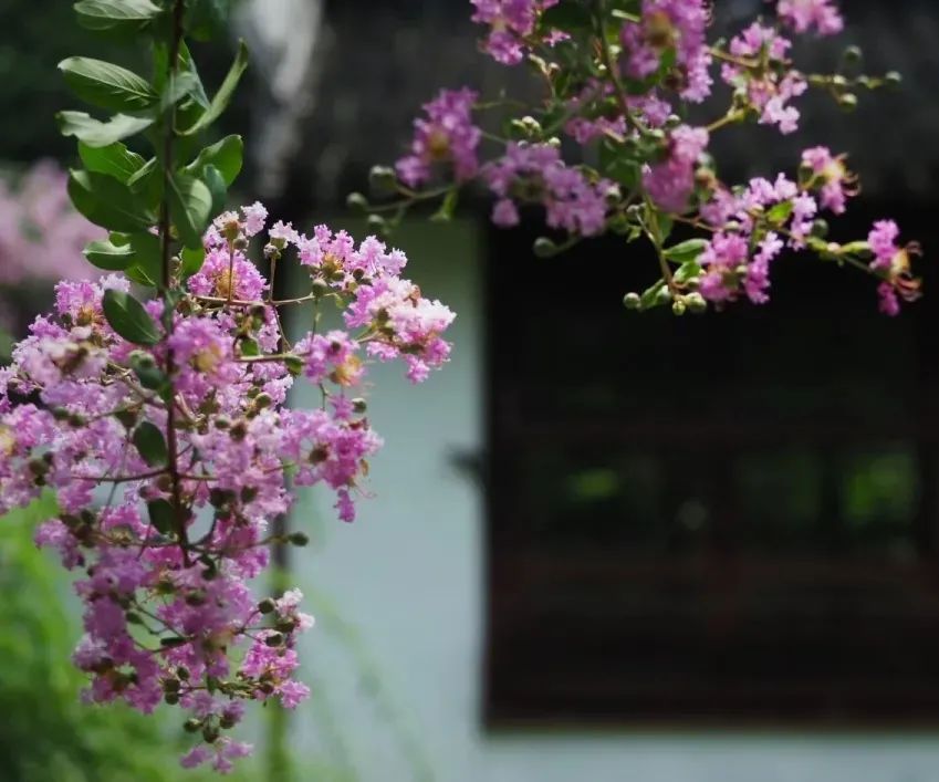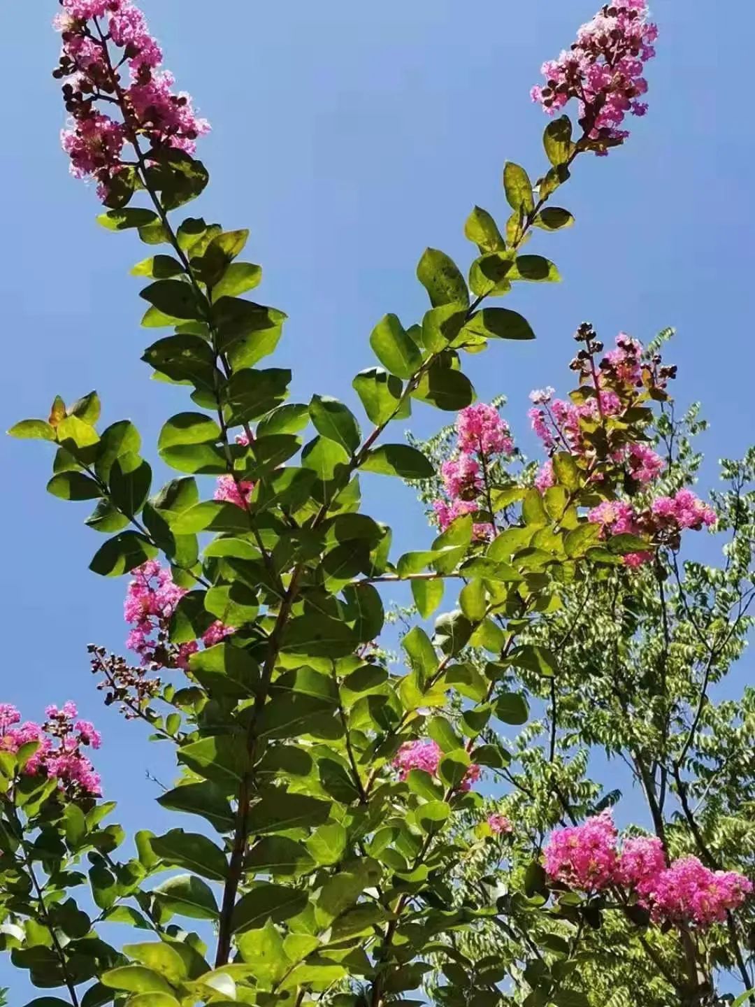 紫薇别名:痒痒花、痒痒树、紫金花、紫兰花、蚊子花、西洋水杨梅、百日红、无皮树,是千屈菜科紫薇属落叶灌木或小乔木。紫薇高可达7米,枝干多扭曲、小枝纤细,树皮平滑、灰色或灰褐色;叶互生或有时对生,纸质,椭圆形、阔矩圆形或倒卵形,幼时绿色至黄色,成熟时或干燥时呈紫黑色,室背开裂;种子有翅,长约8毫米;花期6-9月,果期9-12月。