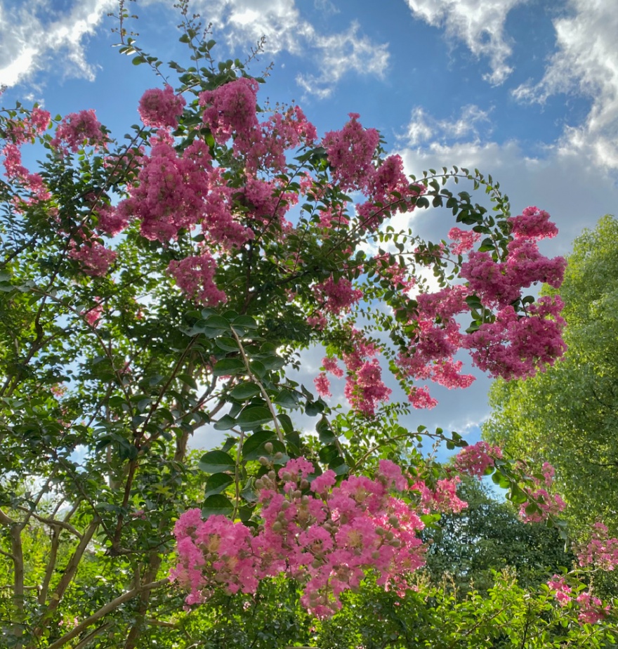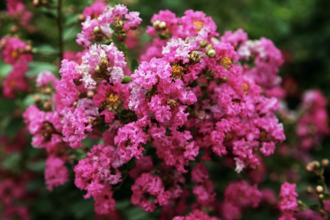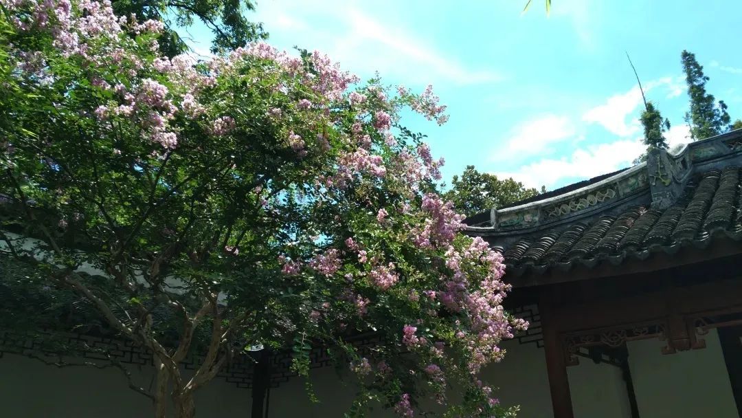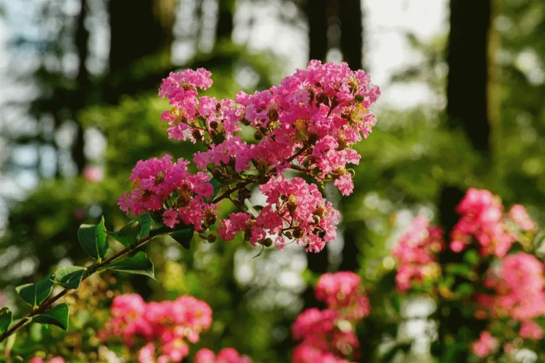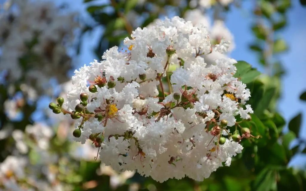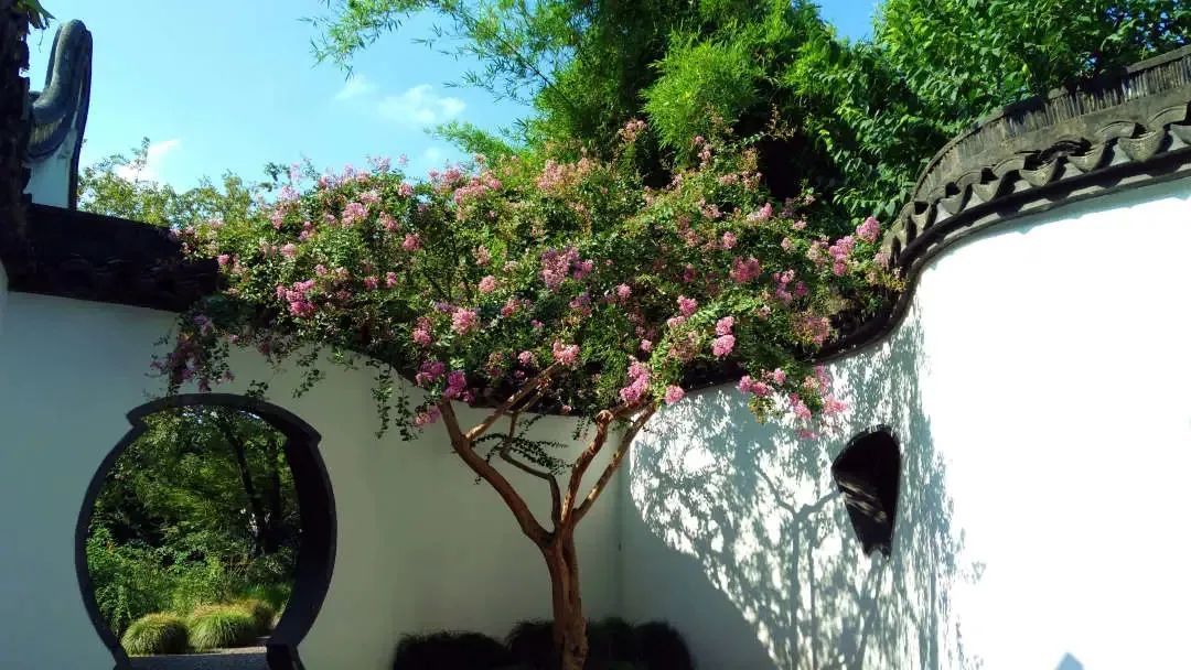 紫薇别名:痒痒花、痒痒树、紫金花、紫兰花、蚊子花、西洋水杨梅、百日红、无皮树,是千屈菜科紫薇属落叶灌木或小乔木。紫薇高可达7米,枝干多扭曲、小枝纤细,树皮平滑、灰色或灰褐色;叶互生或有时对生,纸质,椭圆形、阔矩圆形或倒卵形,幼时绿色至黄色,成熟时或干燥时呈紫黑色,室背开裂;种子有翅,长约8毫米;花期6-9月,果期9-12月。