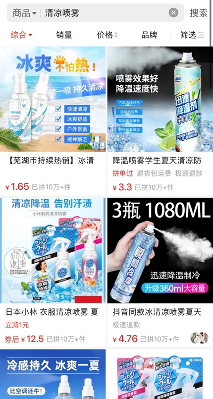 带着疑问,我们在京东、淘宝天猫、拼多多、抖音等平台上购买了4款销售量靠前的清凉喷雾产品。