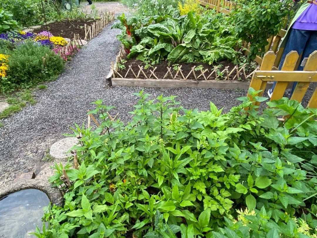 农园南侧的社区花园展区,由一批园艺、景观、设计、空间创意、社区服务类机构和个人共同打造,包含了“水稻田”、“蝴蝶花园”、“沪野园”、“诗经花园”等十余处特色展区。每个迷你花园都充斥着紧扣主题的有趣植被和装置,集结了造园者的无限创意。