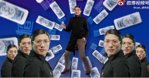 视频中,徐勤根身着西装,画着惨白的妆容,戴着眼镜、头发紧贴头皮,梳着侧分,显得十分正式拘谨,他自称“人类高质量男性”,介绍自己“29岁,中国国籍,来自江苏,是国内少数高净值的男性之一,非常有潜力,喜欢阅读,从事全球资本市场的投资”。