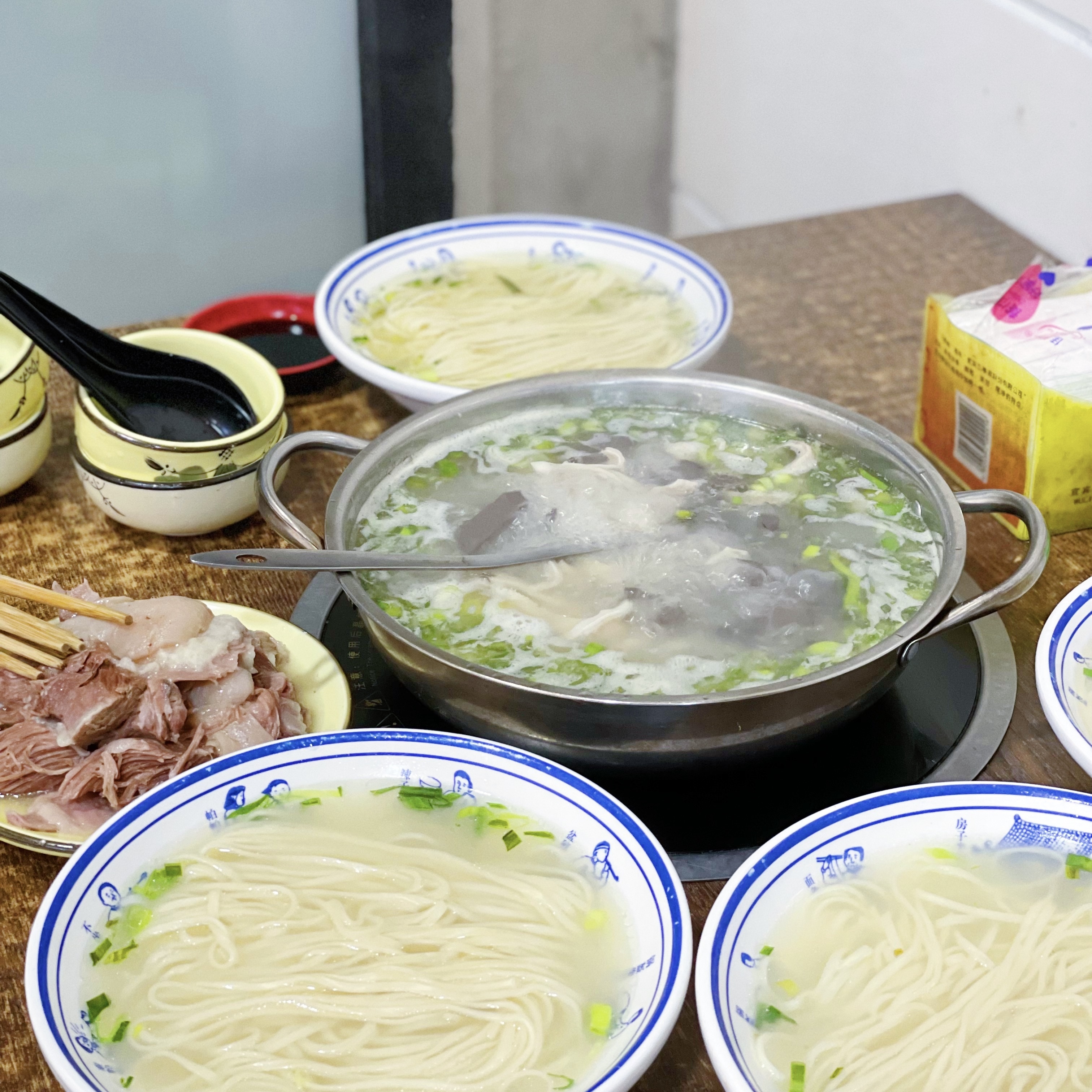 馆子刚开始营业,热气腾腾的羊汤接连端放上来,搭配着肥瘦相间的白切羊肉,入口即化的烂糊羊肉,香气扑面而来。吃法简易而味道不简单,朴实无华的一小碟盐或酱油做蘸料,满口滑嫩、鲜香。当场食客更多会选择蘸盐,最后再以羊汤面条结尾。