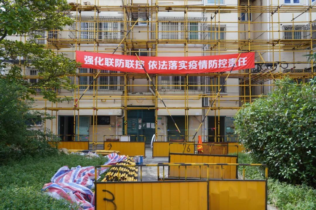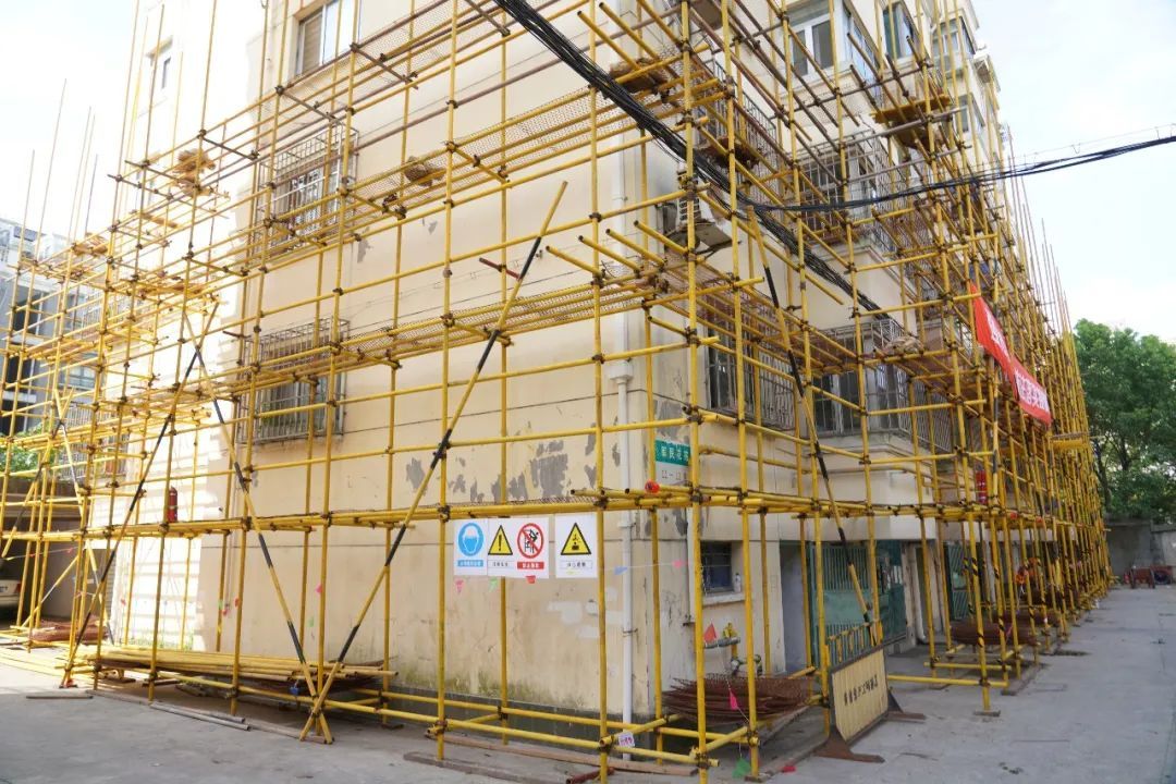 此次修缮包括育秀十一区、江海四区、贝港七区以及军民花苑四个小区。目前,各小区内已搭建起脚手架,施工人员正在拆除小区内搭建的一切违章建筑,并将突出的一二层防盗窗改平,做好项目施工前的准备工作。