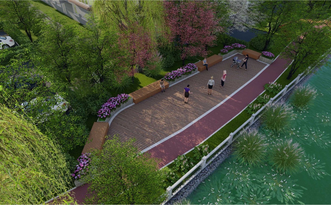 考虑到人们日常生活中的休闲娱乐,小区内将会新修建公园、步道等娱乐休闲场地,并在旧有的活动场地上增添健身器材,同时对绿化重新设计,增设标准化垃圾房以提升小区景观。