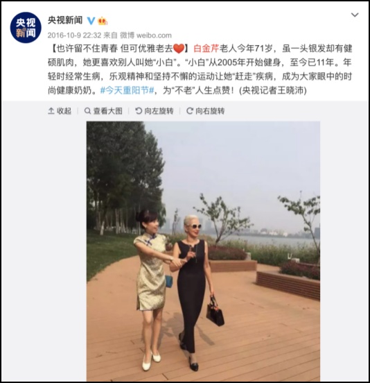 3、网红奶奶白金芹:70多岁依旧优雅挺拔