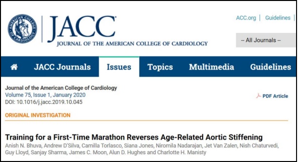 该研究让之前没有任何跑步经历的普通大众进行了为期6个月的训练,然后他们参加了人生第一场马拉松,结果显示,经历了6个月系统训练,他们的血压和动脉硬化程度明显降低,相当于血管年龄减少了四年,而年龄相对较大的人从跑步训练中受益相对更大。