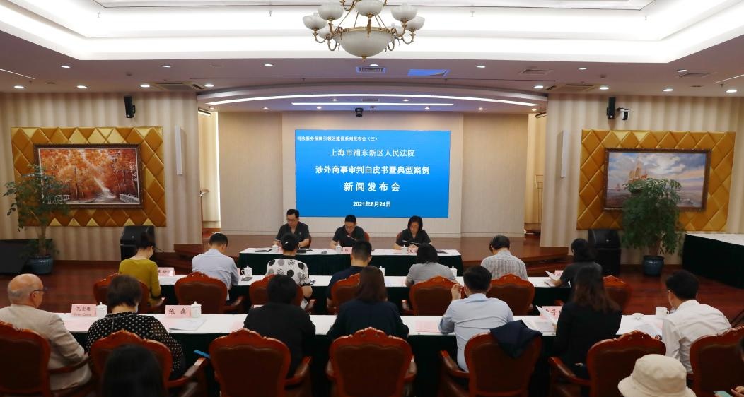 今天(2021年8月24日)下午,上海市浦东新区人民法院(以下简称上海浦东法院)召开新闻发布会,通报该院涉外商事审判服务保障引领区建设的十项举措,并发布涉外商事审判工作白皮书及典型案例。本次发布会是上海法院推进法治化营商环境建设系列发布会的第二场,也是上海浦东法院司法服务保障引领区建设系列发布会的第三场发布活动。