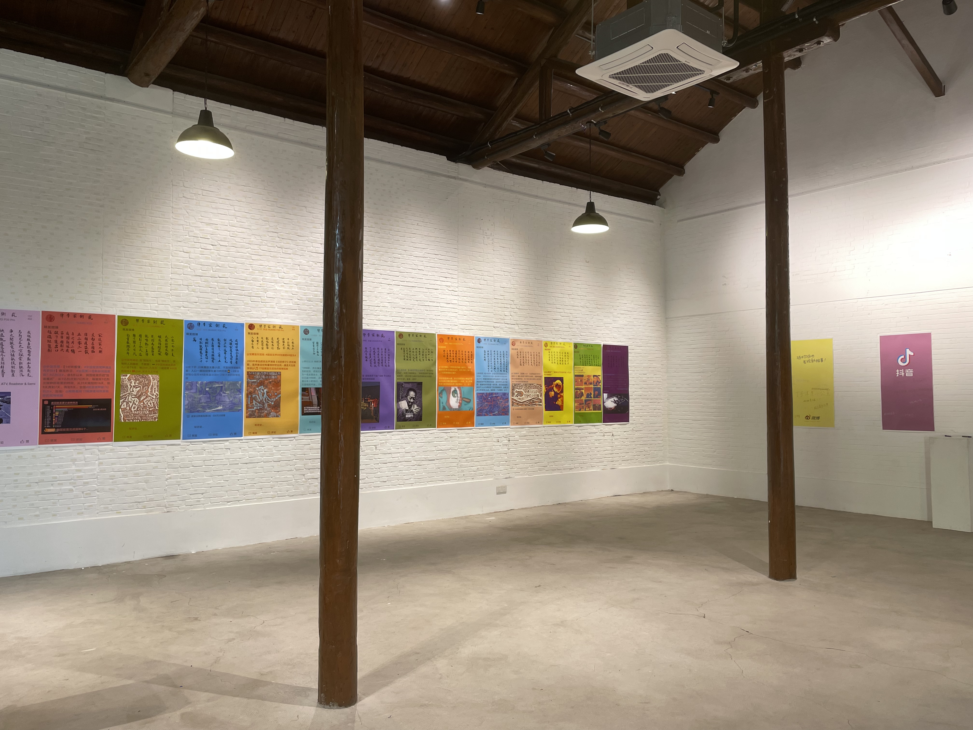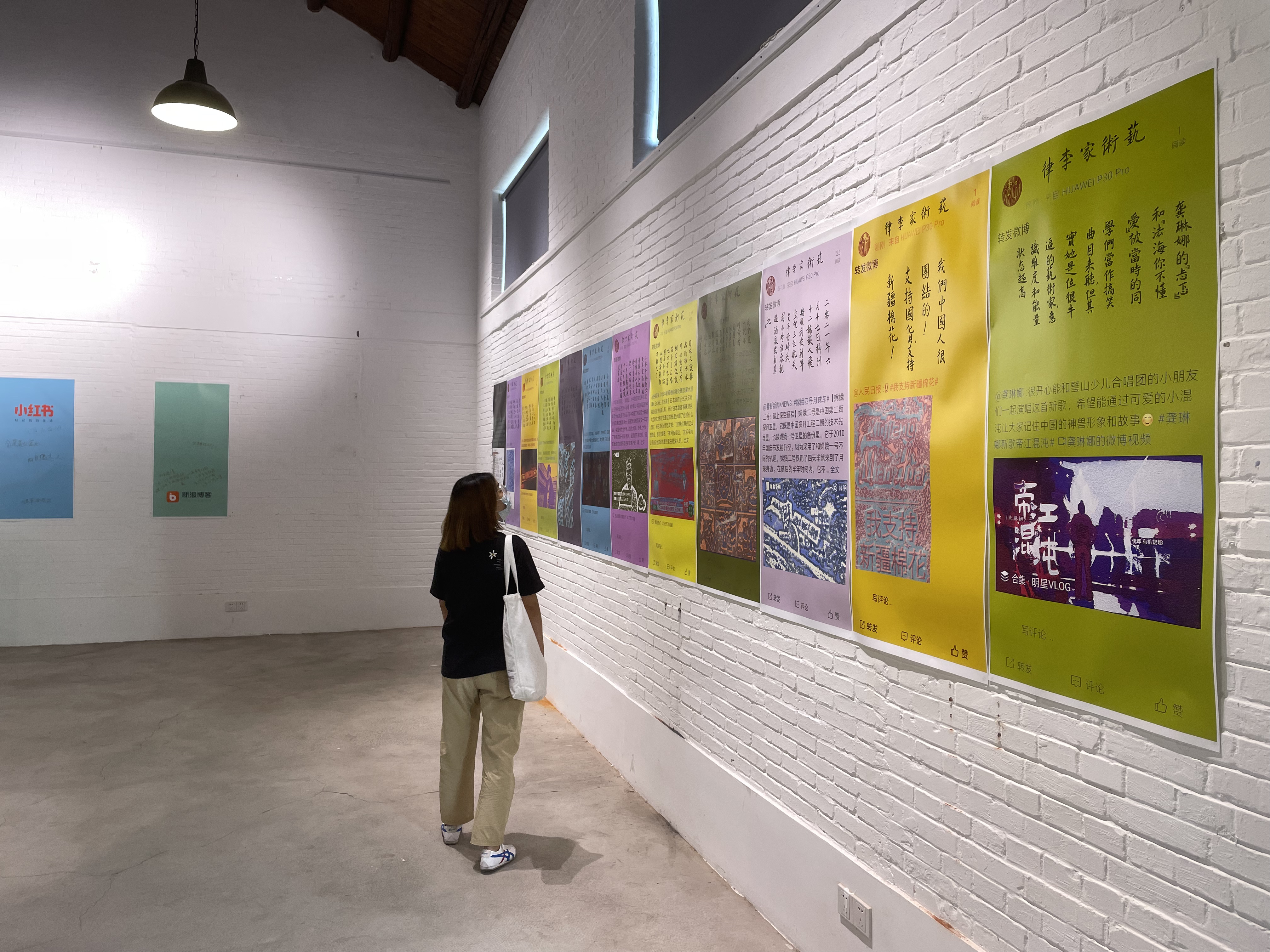 近日,记者来到云间粮仓文创园内的挥发艺术中心,《我所经历的时代》——李律个展正在此举办。新晋青年艺术家李律基于微博、抖音等社交媒体现象,运用“安迪沃霍尔丝网”印刷、中国传统书法、阴刻篆体等手段,将自身与现象的交集进行艺术呈现,共展出30余幅作品。作品中,李律用轻松诙谐的口吻讲述了她对现象、事件的个人看法、记忆和视角,探讨了流量时代、消费方式 、流行现象、 5G网络、网红生活和日常现成品的挪用等问题,以引发观者对社交媒体、事件和所处时代的些许思考。