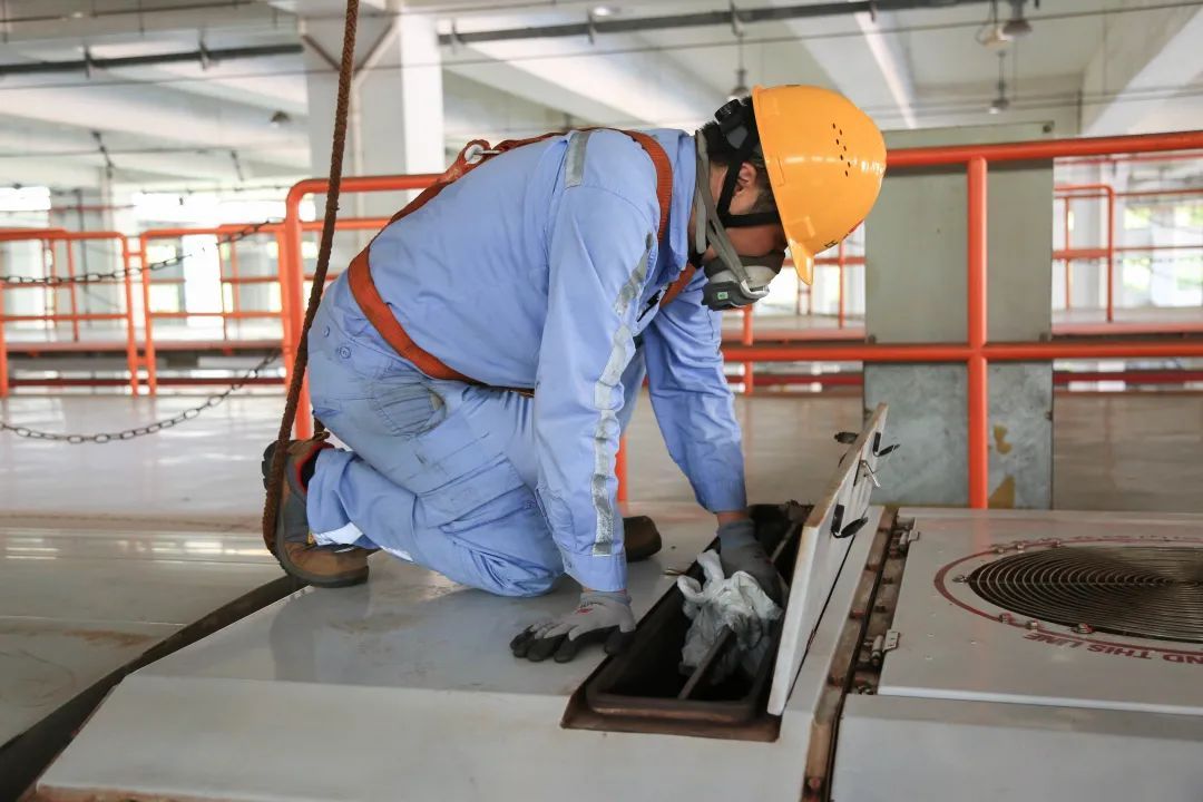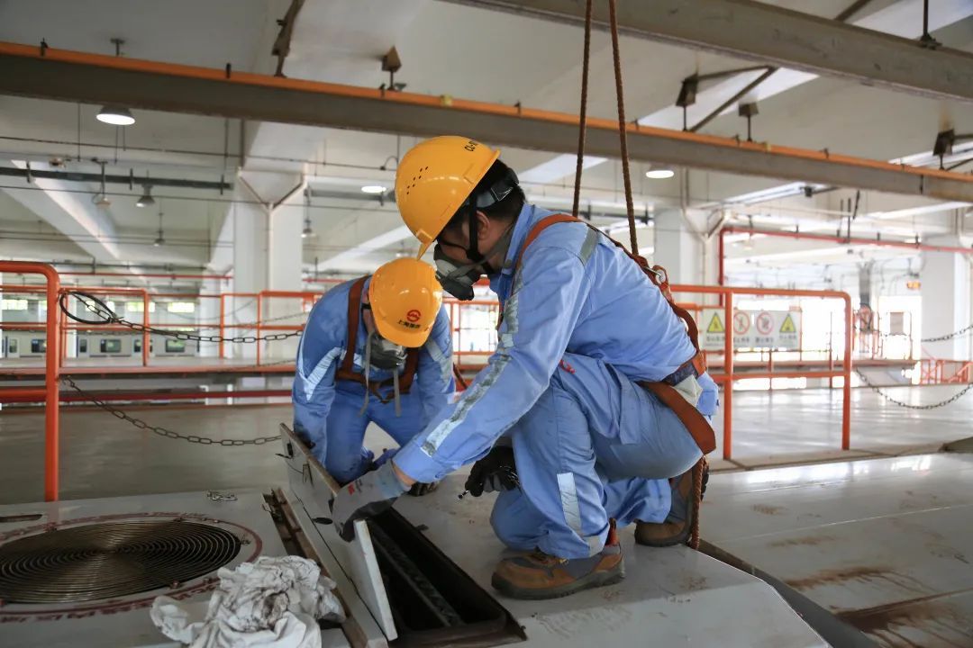 据了解,地铁列车的空调称为顶置式空调机组,维护时需要将列车停在专门的检修股道,并进行登高作业。以一列6节编组列车为例,每次保养一列列车空调至少需要2人,还要准备好近40斤的工器具,工作耗时长达4个小时。如今正值盛夏,作业环境温度更是高达40℃以上,工作人员的挥汗如雨,换来了市民在乘坐地铁列车时的安全和舒适。