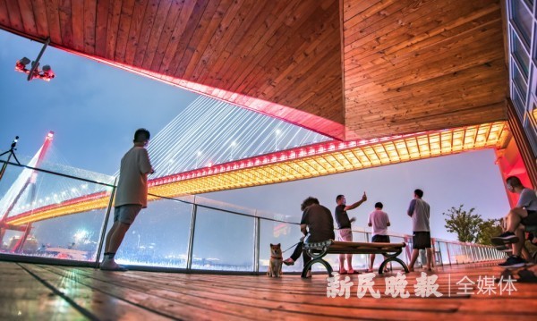 △图为杨浦大桥下的浦东滨江驿站可供市民休憩纳凉