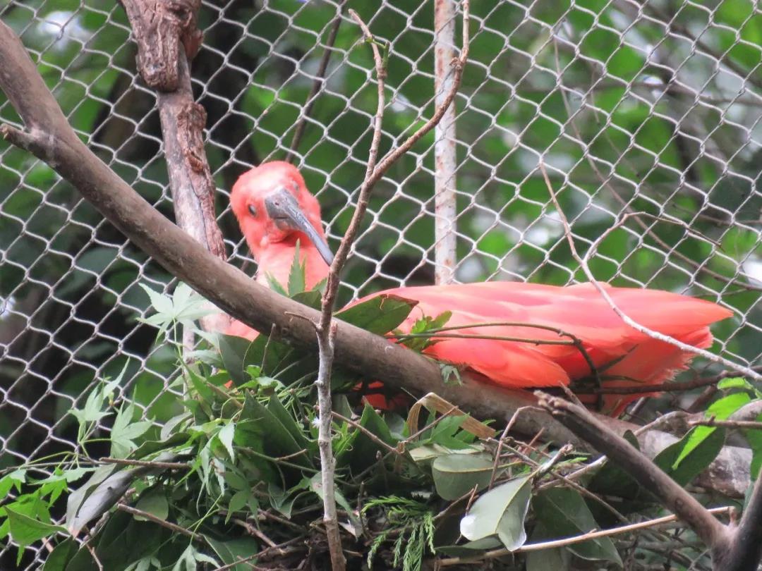 美洲红鹮通体红色,在眼前闪过就如红色火焰一般,不少游客会误认为是“火烈鸟”。还有些游客会把美洲红鹮(huán)念成美洲红鹳(guàn),虽然两者名字相近,产地相同,但却是两种完全不同的鸟类。目前,进入式鸟园和鹤轩共生活着近30只美洲红鹮,期待游客朋友的到来。