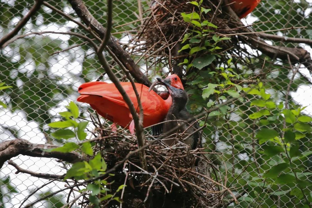 早在2016年,上海动物园鹤轩内的美洲红鹮也有过自然繁殖的经历,可惜幼鸟并未成活。所以,此次的繁殖成功显得更为可贵。