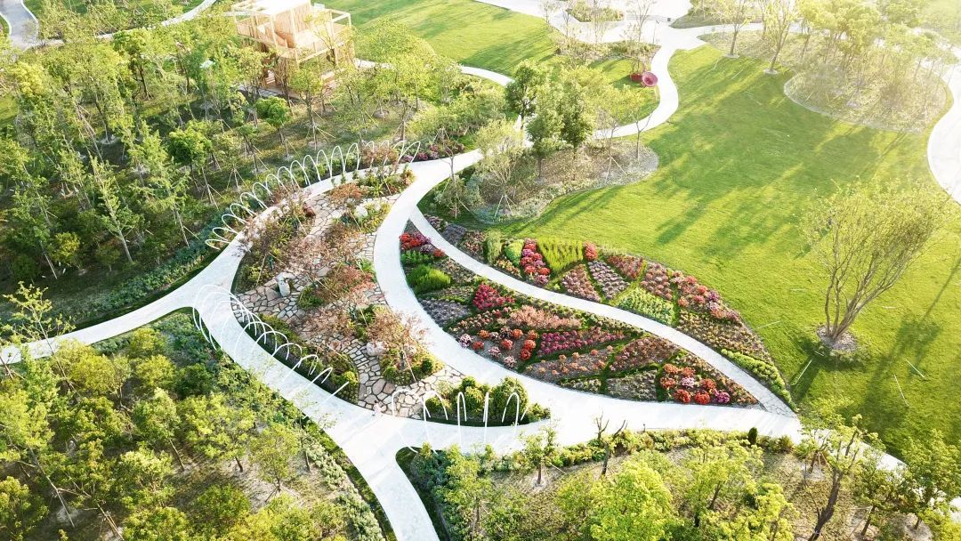 公园内设有芳香伊甸园、水岸观景区、松果乐园等三大主题区。一起来探索一下吧~