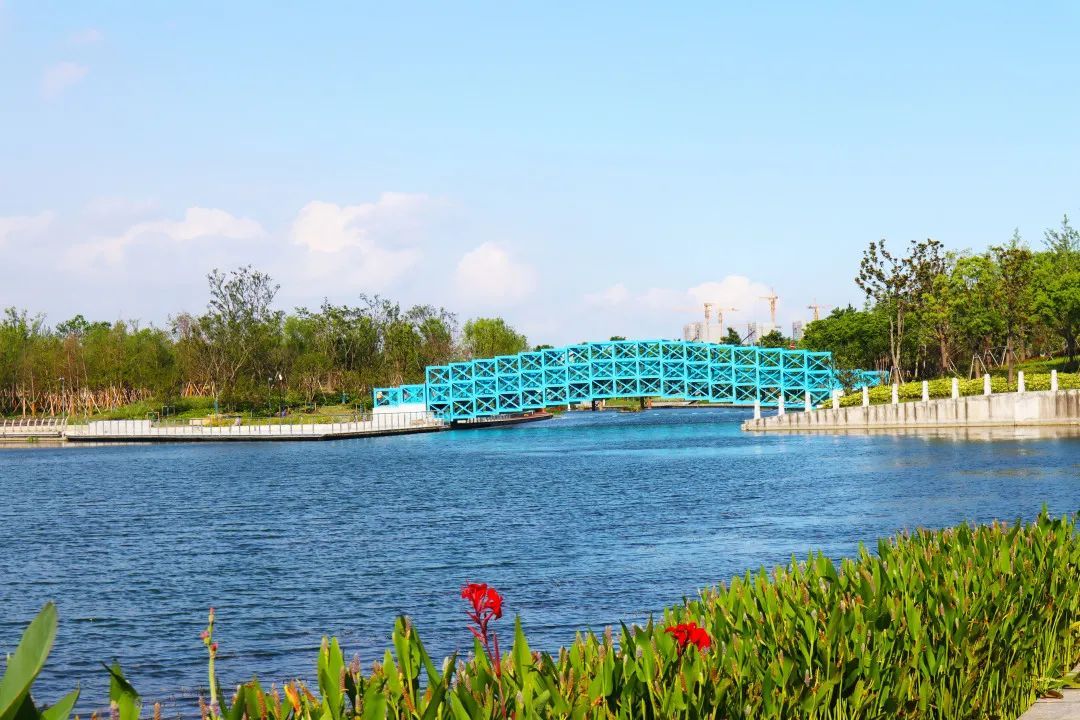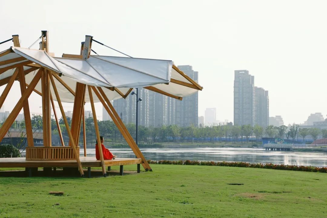 园区内设有澜桥、梨花廊、梨花亭等独具创意、富有艺术感的休憩设施,供游客赏景和休憩,静享落日霞光、金色涟漪。