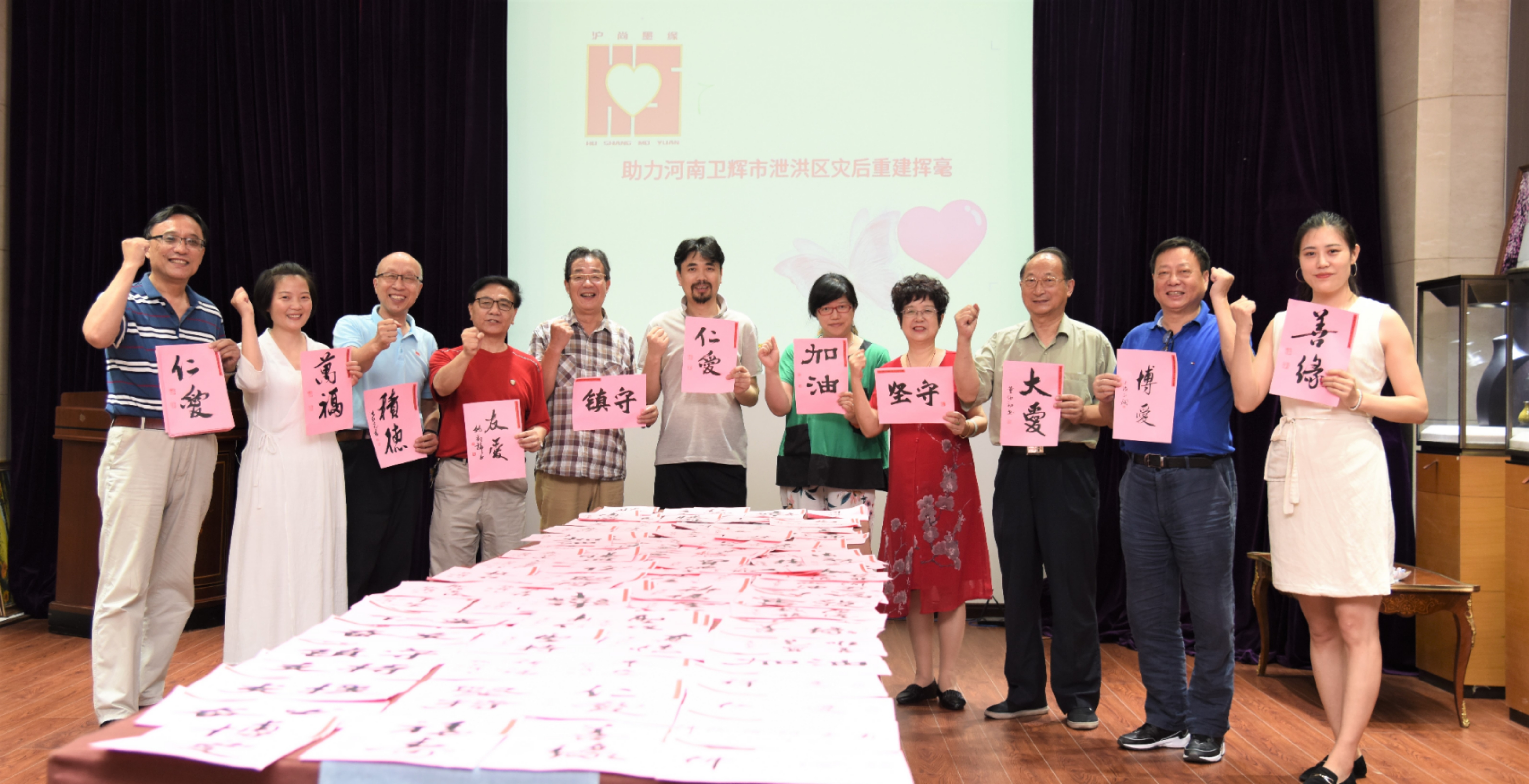 当晚,沪尚墨缘召集志愿者开紧急会议,确定了防疫物资清单,并积极准备。公益中心秘书长程一鸣、顾问董幼初针对河南新乡、卫辉受灾村庄的村民进行笔墨激励创作,从而鼓励受灾居民早日走出洪灾的阴影,尽快重建家园。