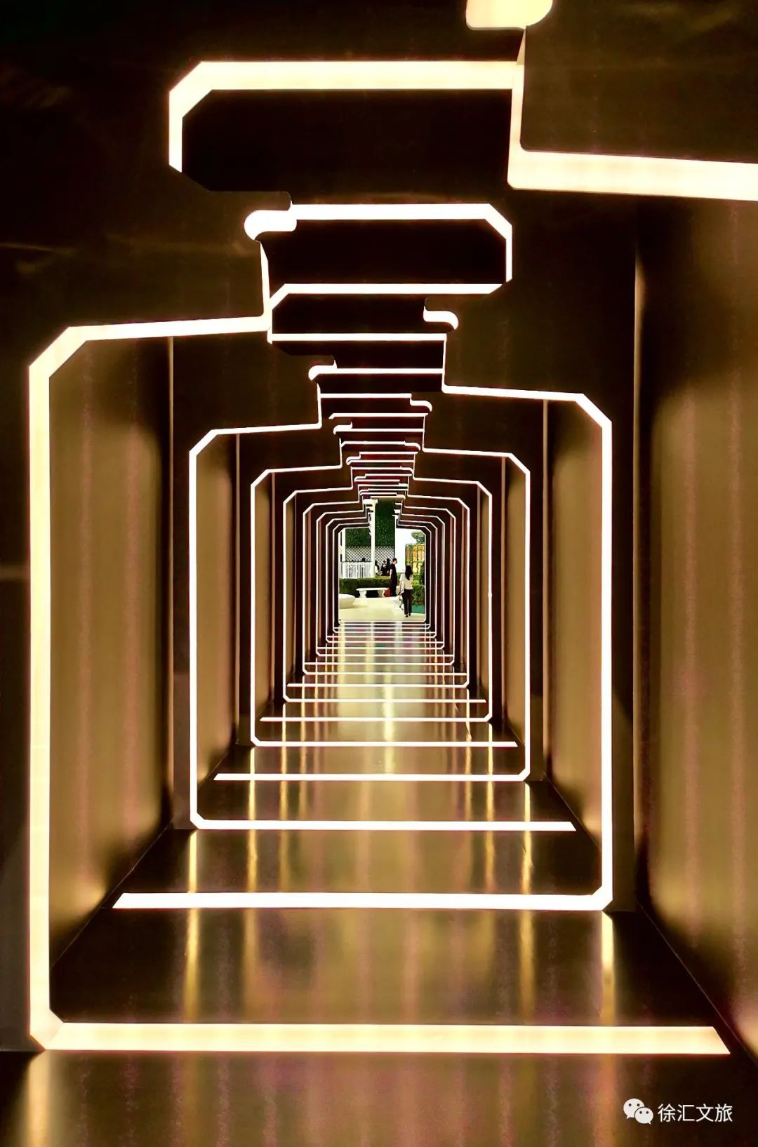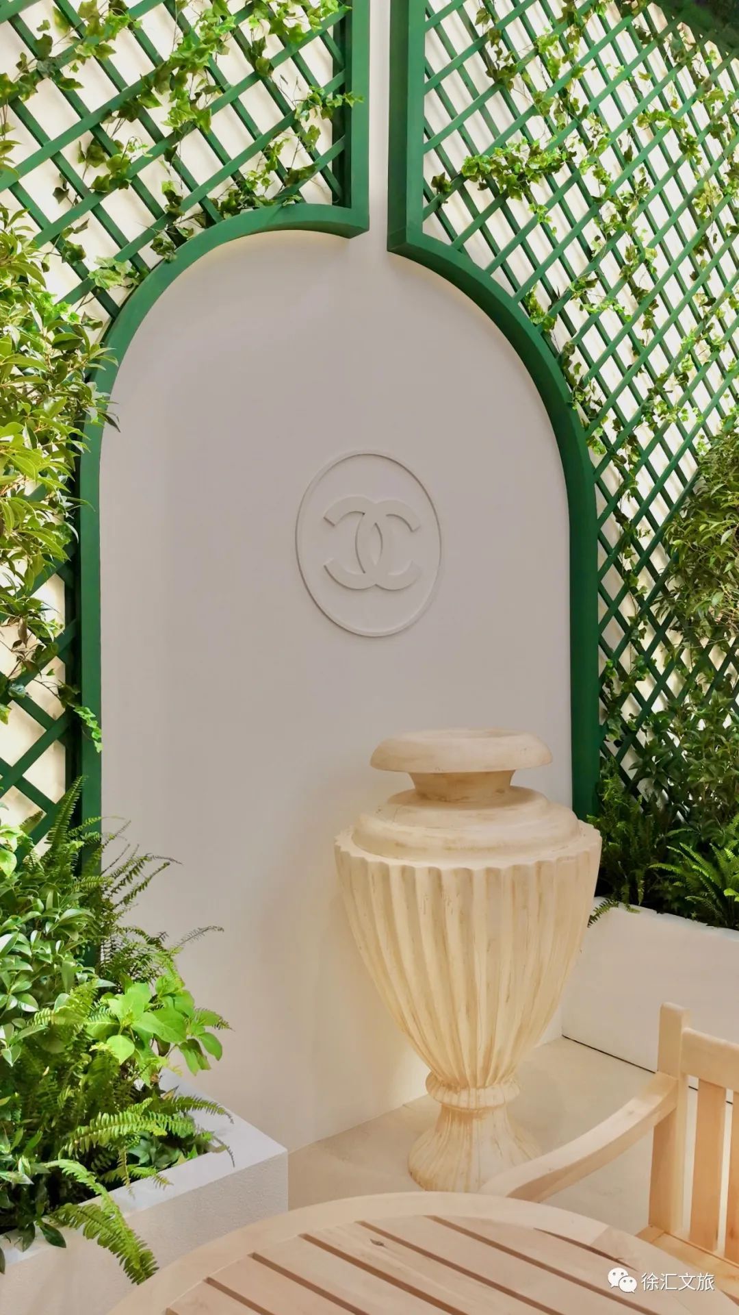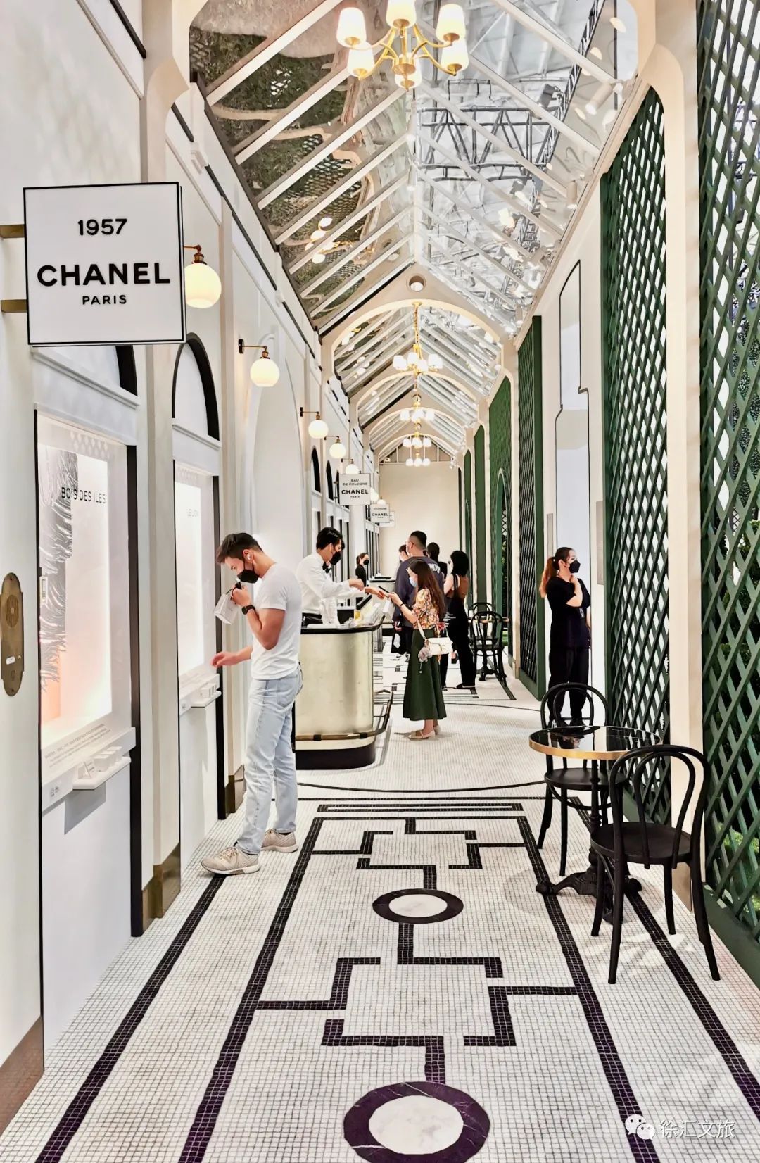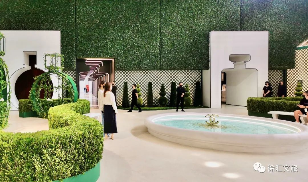 穿过香奈儿5号香水瓶形状的光影长廊,清新优雅的法式花园映入眼帘,这是一处让人沉醉的香水奇境。