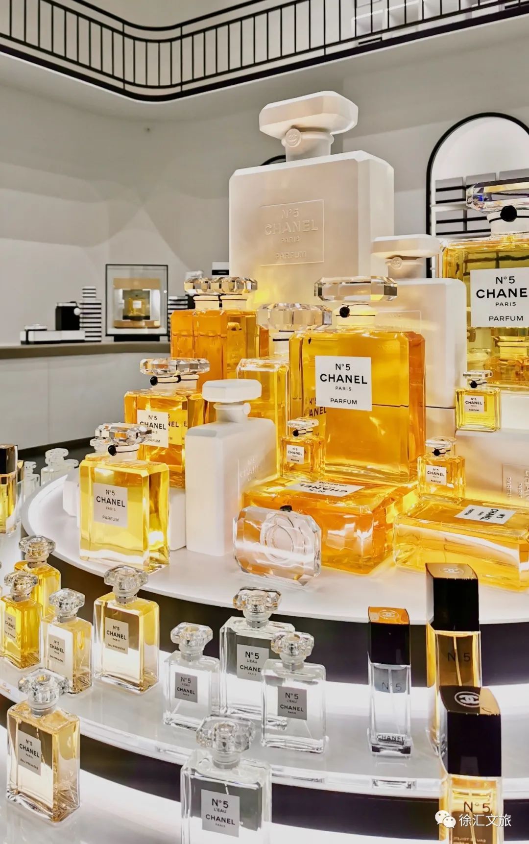 五号香水、可可小姐香水、嘉柏丽尔香水、邂逅香水、蔚蓝男士香水、珍藏系列香水、香奈儿之水,7个香奈儿香水专属空间,如同珠串,环绕花园。