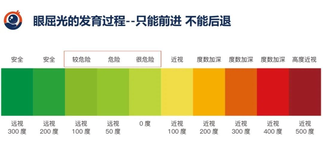 随着生长发育的过程,眼视觉发育会经历一个正视化过程↓即从较高的远视逐渐发展到低度远视或轻微的近视状态(即正视眼)。