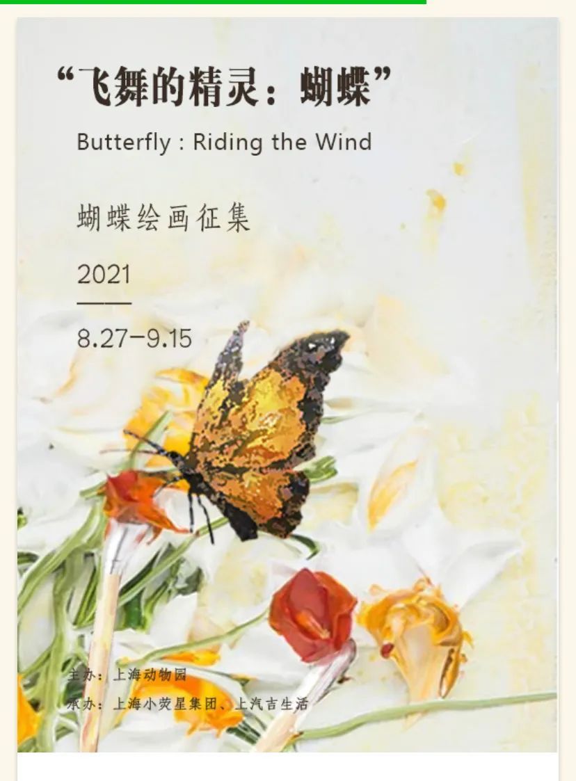 • 获奖的小画家们将受邀参与上海动物园蝴蝶绘画•标本展颁奖典礼,暨蝴蝶展媒体通气会,一同放飞蝴蝶,漫步蝶海。