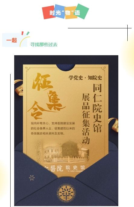 现向全体同仁医院员工及家属、患者、老领导、老前辈、海内外的兄弟姐妹,以及所有关心、支持医院建设发展的社会各界人士,征集同仁医院建院以来的各类院史相关资料与实物。