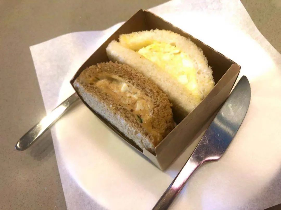 据店内工作人员介绍,销量最高的是鸡蛋吞拿三明治,全麦的吐司佐以香滑浓郁的吞拿鱼,融合稍许香草味芥末酱,风味特别。与其搭配的绵软白吐司,加入经典的蛋黄酱和香嫩鸡蛋,清爽每一口~