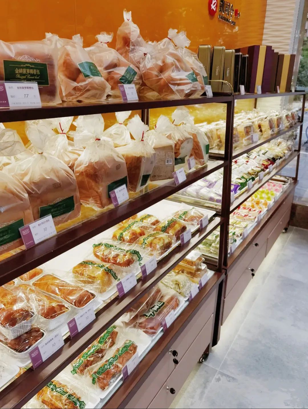 丰庄路上的这家凯司令店面装修以白色基调为主,简洁大气,同时一楼及二楼都设有座位,可供顾客堂食。