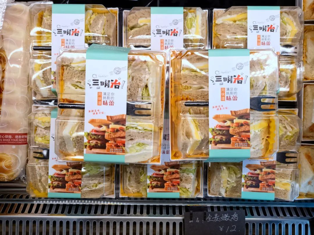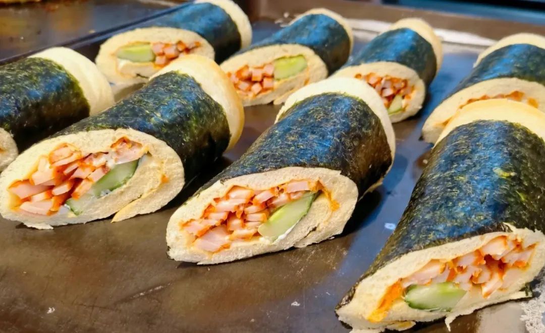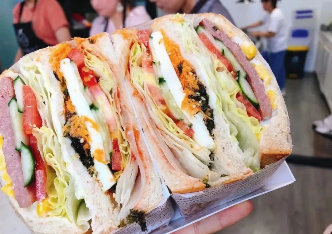 这家面包房已经开了十多年,几乎每一位老安亭人都知道它。店里品种丰富,光三明治就有好几种。招牌三明治的面包片经过黄油微烤,口感浓郁香脆,夹层有培根、生菜等。如果你是“不爱生菜星人”,还可以选择果蔬三明治,贴心的店家把生菜替换成了肉松~