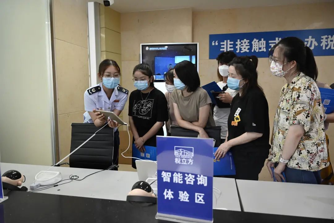 在税务干部的讲解指引下,创业者们参观了办税服务大厅、“税立方”专家门诊咨询室、12366远程座席接线室……体验面对面、点对点的税务咨询,深入了解“税立方”三诊服务机制。