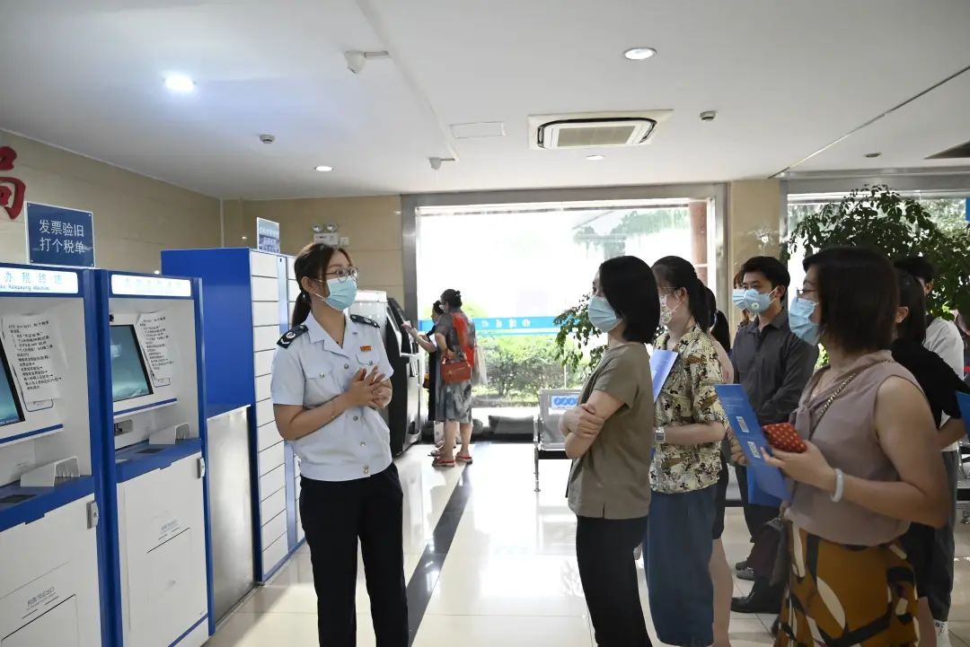 企业代表走进办税服务厅实地参观了办税窗口、发票“网上申领+专业配送”专区,在自助办税区体验了税单打印等涉税业务,进一步加强了对税收业务的了解。