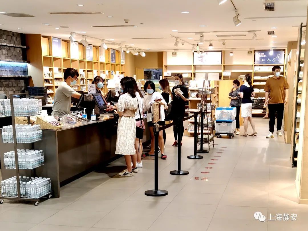 无印良品收银台时常有顾客排队。