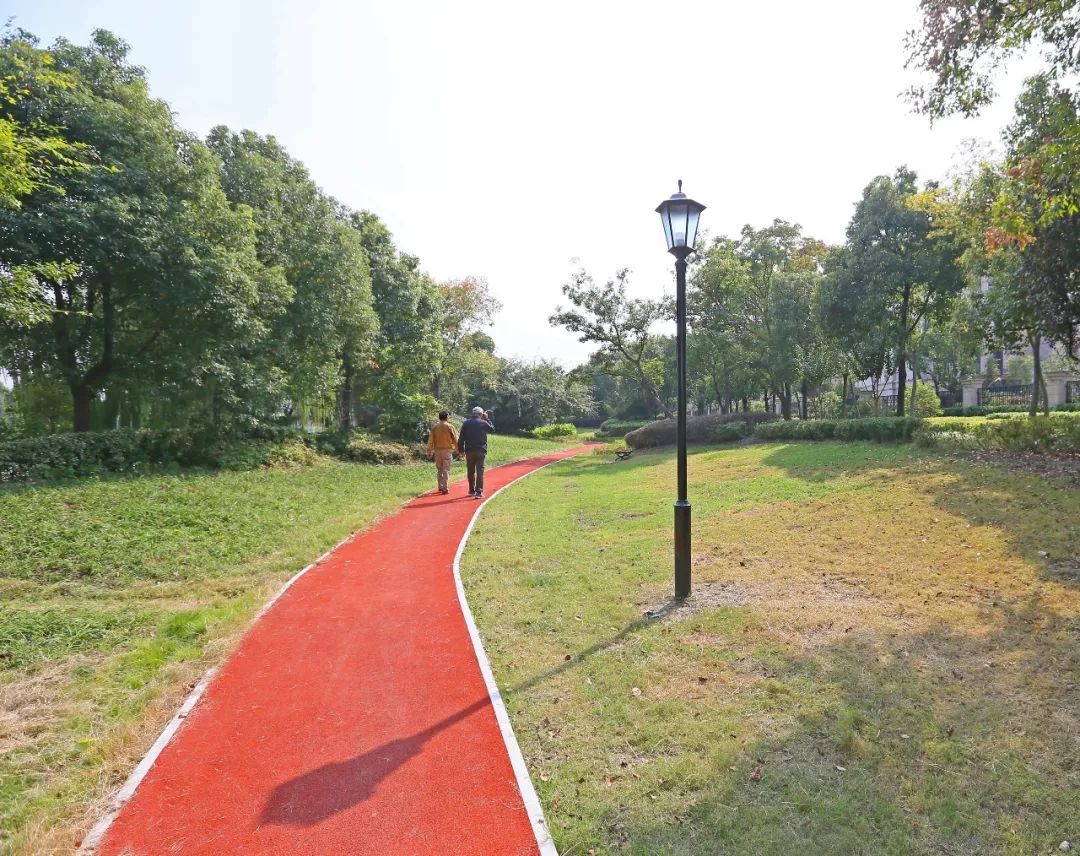 “每天吃好晚饭,我都会和家人来这里,孩子在草坪上玩耍,我就沿着步道散步,然后再一起遛达回家。”家住绿地蔷薇九里小区的居民刘女士告诉小松,自从健身步道嵌入该绿地后,可以就近选择这处健身场所,绿地里空气清新、环境优美,在家门口就能享受到舒适、健康的运动体验。