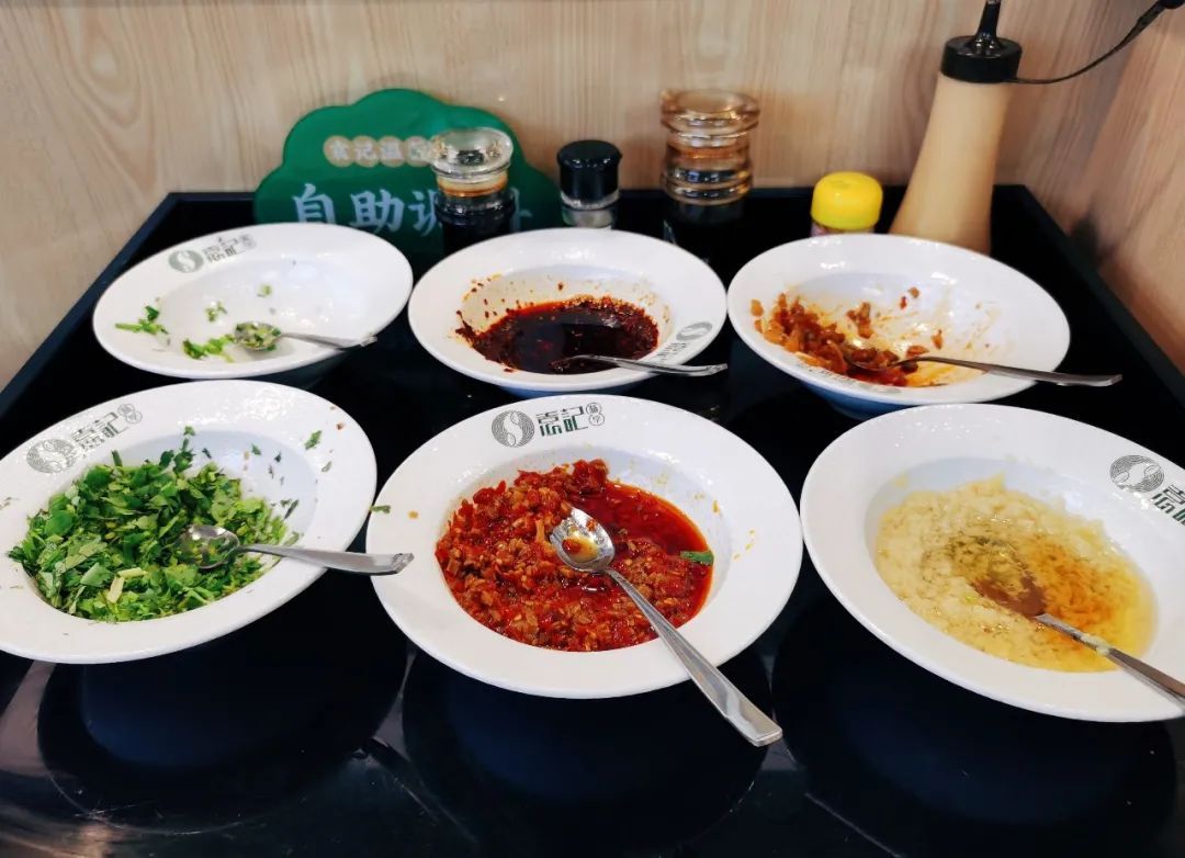 值得一提的还有店内配备的自助调料区,其中放置有香菜、葱花、辣椒油、蒜汁、剁椒等调味料,大家可根据自己的口味自行调制,如此一来,用餐也变得更合心意。