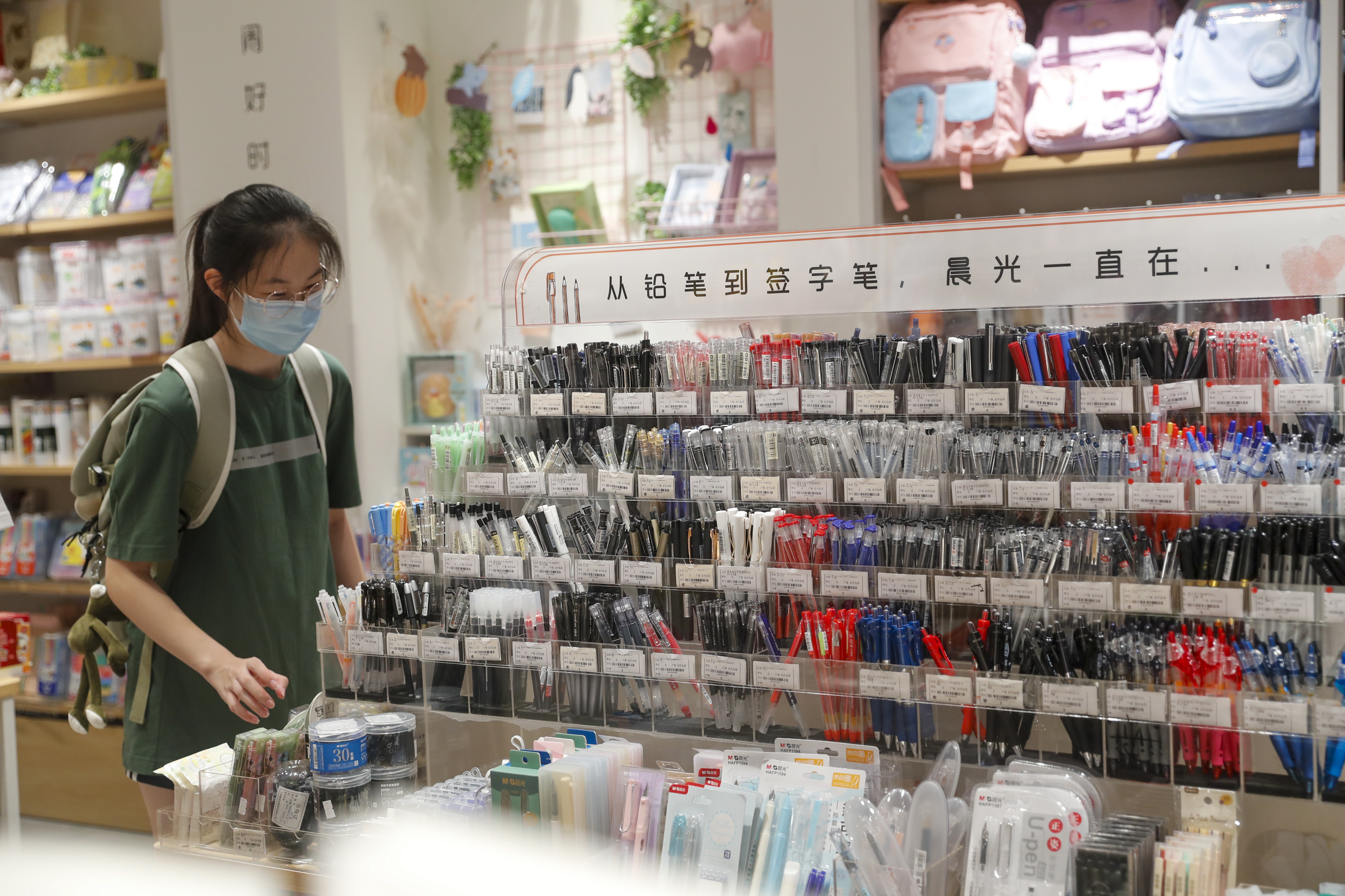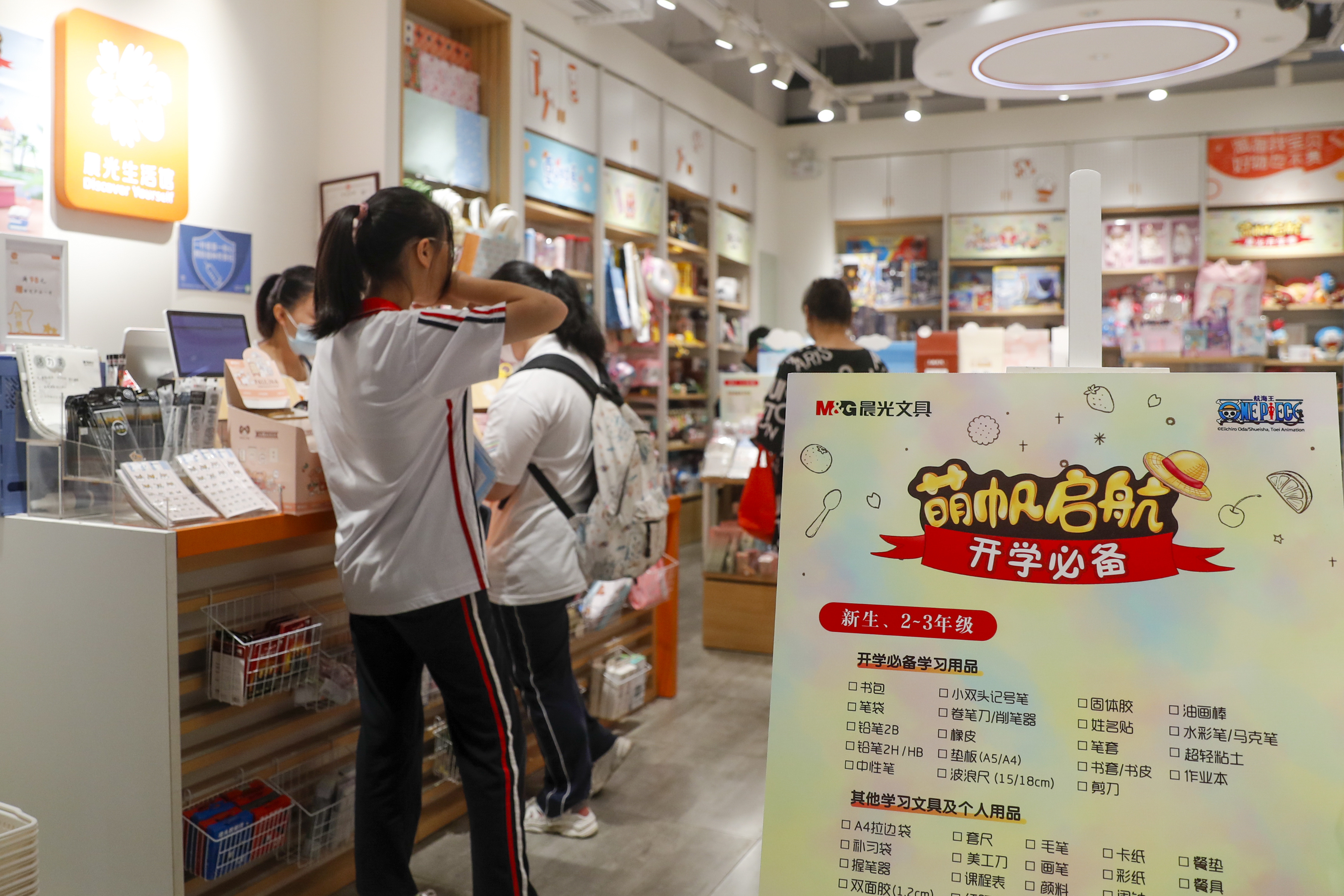 今日中午饭点,位于新邻生活广场B2层的晨光生活馆内人声鼎沸。开学前一天,穿着学生服的学生们不约而同来到店内挑选自己喜爱的文具用品,用这样的方式迎接新学期的到来。