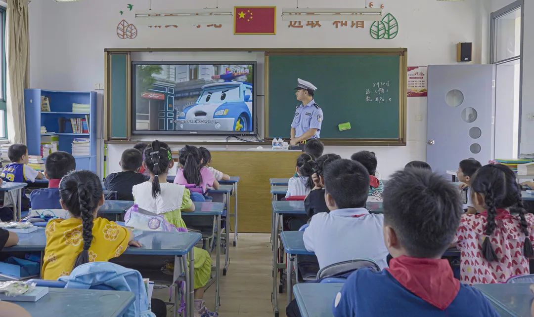 在瀚文小学三年级四班内,交警也为小学生们开展了交通安全教育课,详细讲解了步行安全与行车安全,并且在现场进行防诈骗知识问答、安全驾驶等互动环节,还为答对题目的学生送上礼物以示鼓励。