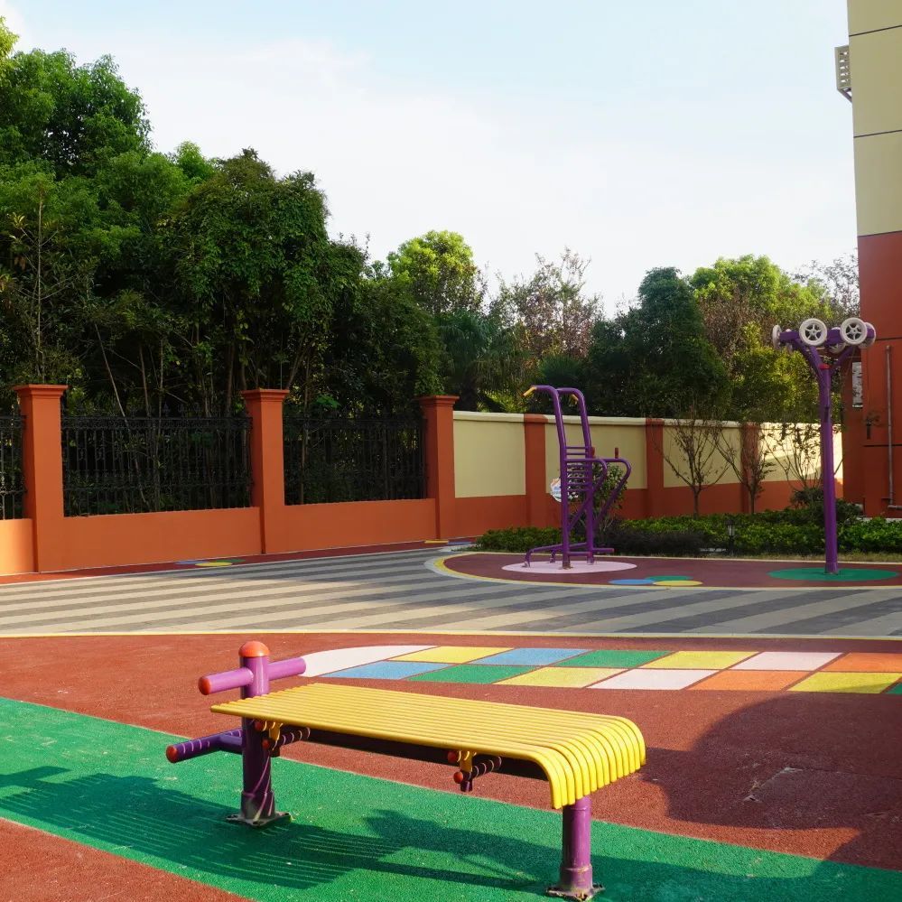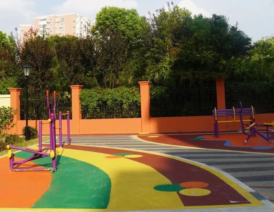 沿主干道继续往东走,就会看到本次改造最亮眼的存在——健身广场。两个小广场设置在第4幢、8幢和16幢楼栋之间,设施齐全,鲜艳明快的色块令这个老小区重新焕发出生机与活力。