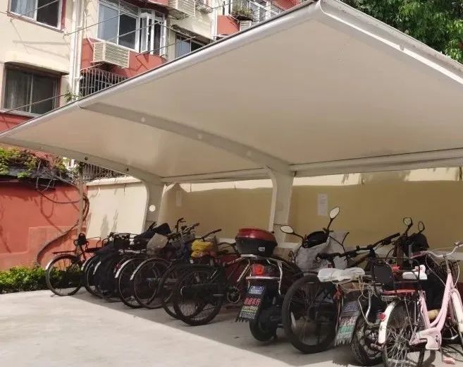 改造后的虹园小区还增加了许多非机动车的停放空间。车棚重新加固刷新,换上了宽大的斜顶雨棚。车棚内新安装非机动车充电桩,解决了小区内飞线乱充电的问题。