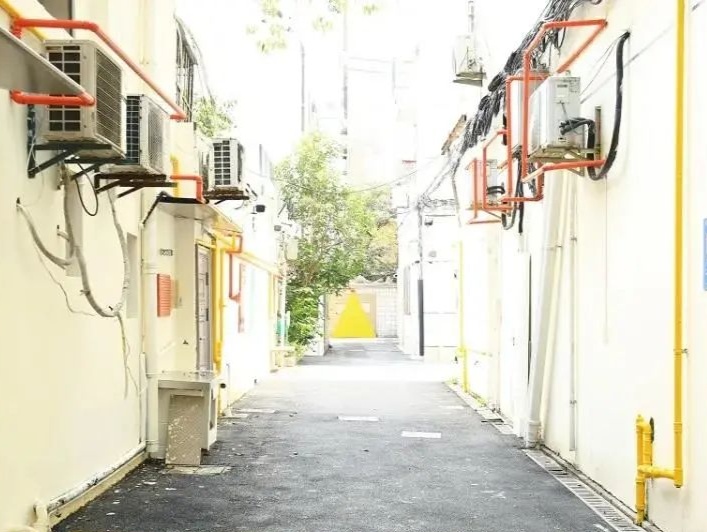 更新改造后的武夷路338弄很亮眼。站在弄堂口,第一眼就会被贯穿整个弄堂的黄色和橙色所吸引,抬头便能看到“WUIYRD”的标识,这个标识源于“春满华阳·武夷印象”设创大赛设计师邱祎入围作品。弄堂里所有的管道都被刷成了橙色或是黄色,明亮的色调让弄堂充满活力。