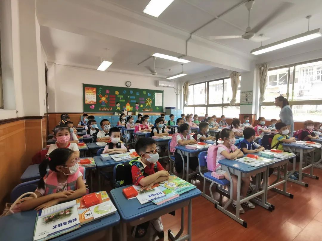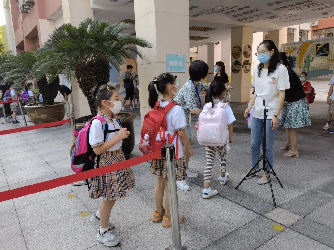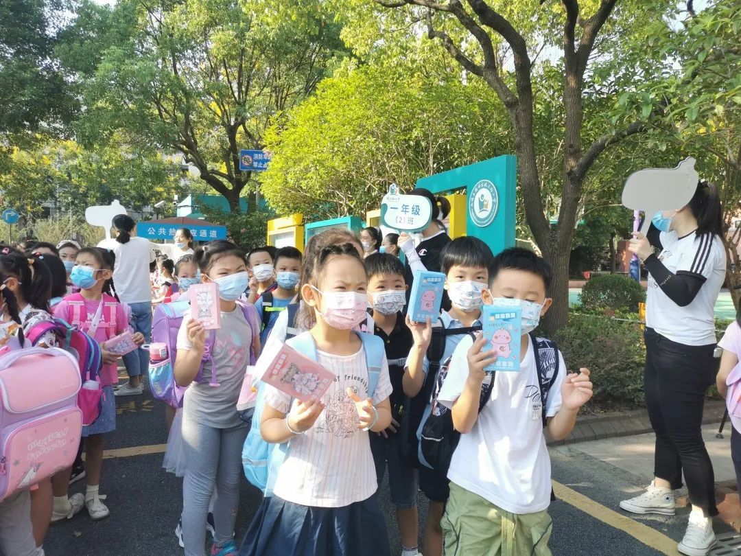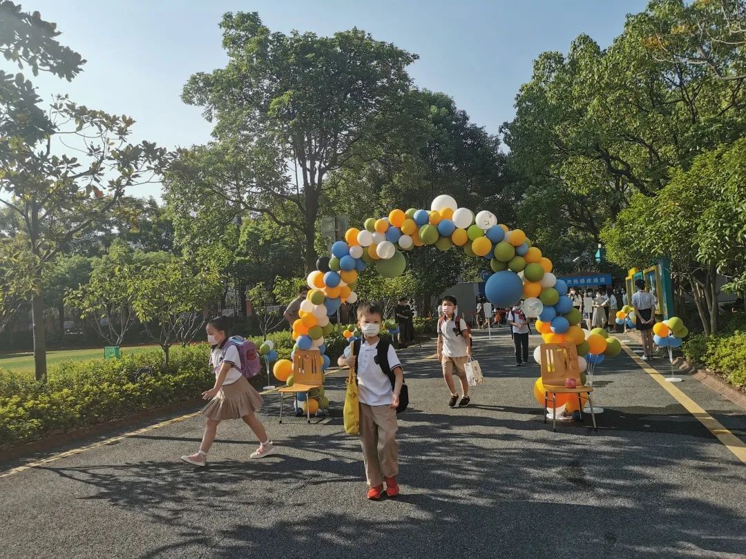 校园里,彩色气球搭建的拱形门、宣传板上亲切的话语,都让小朋友们对新环境充满期待。大家按照要求错时入校,佩戴口罩,经过测量体温等流程顺利地迈过校门。高年级的学长学姐们,为新来的小朋友发放“盲盒”礼物,还带领着他们找到自己的班级。