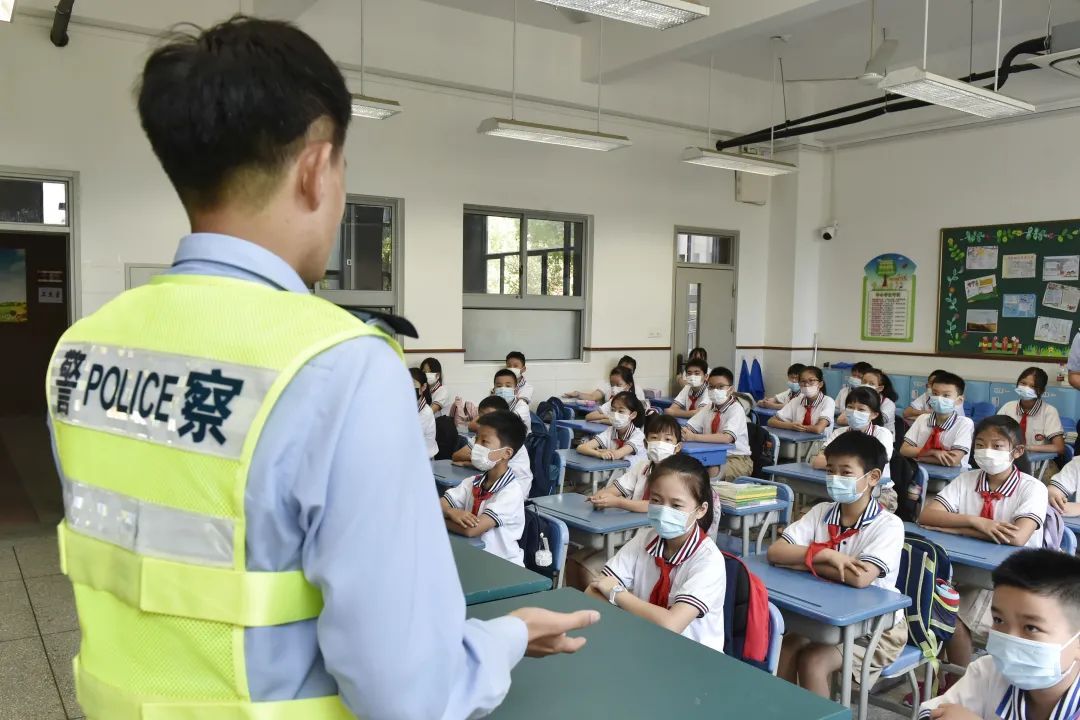 上海音乐学院实验学校六(1)班的课堂上,上学路的交通安全,成为新学期的第一课。杨浦交警支队机动大队民警倪嘉辉作为上课的“老师”,给孩子们讲解马路上“包饺子”交通事故以及最近新出台的交通规则。