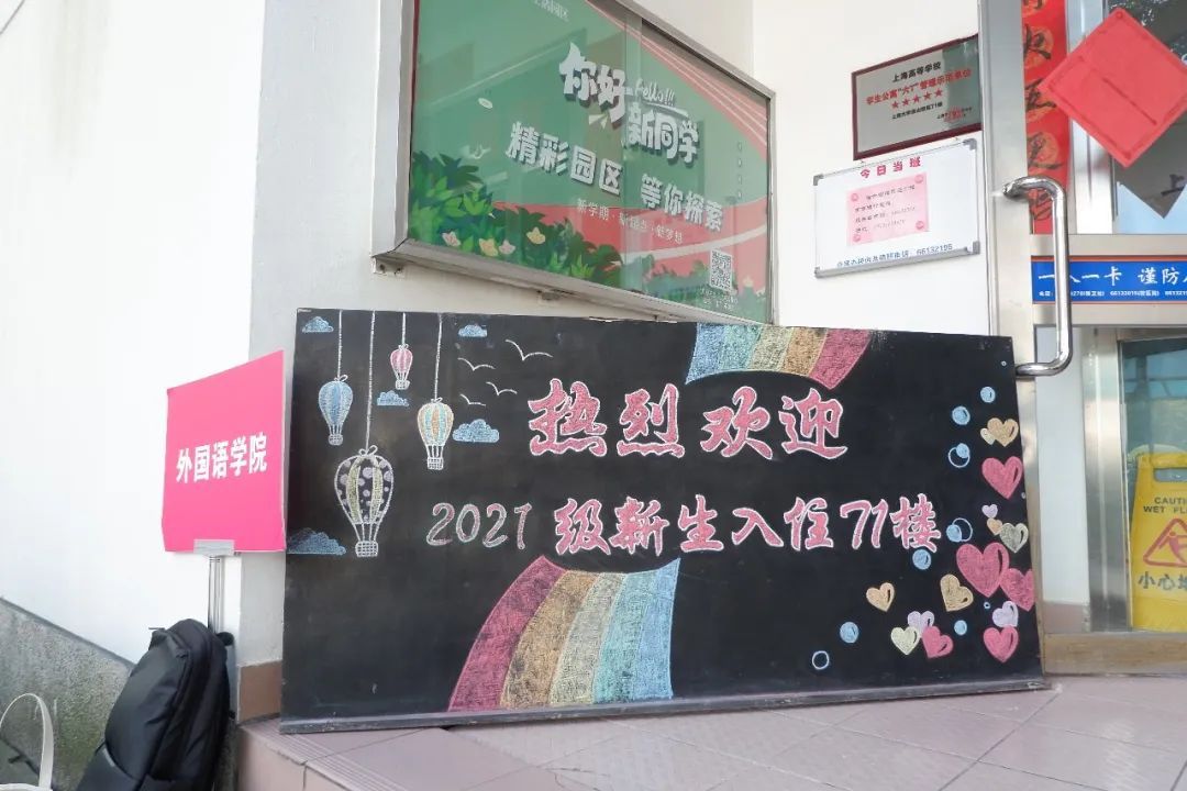 为了营造安全舒适的住宿环境,宿管阿姨们早已安排妥当。学生公寓门口,同学们排着队,消毒、测温、身份核验、登记等入住流程一样不落。而不远处的食堂阿姨正为新生们推出暖心菜肴,“上大糕”“八大件”……满满的期待只为遇见你~
