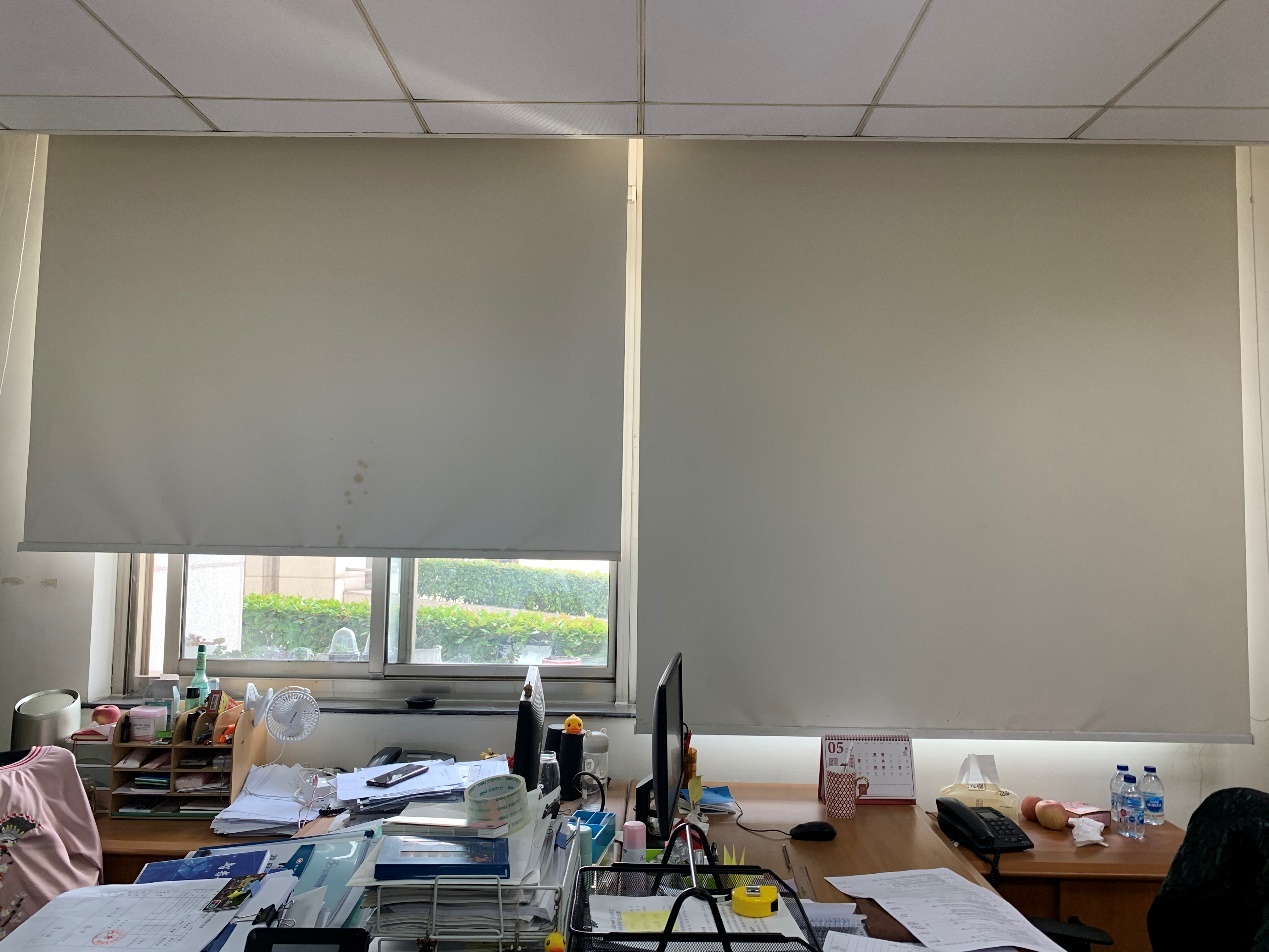 夏季阳光透过窗户的辐射是导致室内高温的“罪魁祸首”,会增加空调负荷。区办公中心大楼内办公室、会议室等所有室内房间外窗装配有内遮阳设施包括软卷帘、遮阳格栅等,有效减少太阳辐射热负荷,进而降低夏季空调能耗。同时,外窗设计满足通风开口面积不小于窗面积的35%的要求。在过渡季节,开启外窗充分利用自然通风对室内进行冷却、换气,大大降低了空调制冷能耗及新风机组运行能耗。另一方面,办公中心大楼建筑也充分利用采光天井、天窗等设计增强室内自然采光,有效把握自然采光与热辐射的平衡。