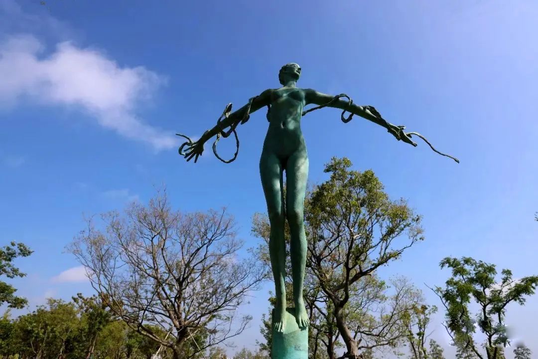 这些雕塑在户外长期展示,让更多的居民游客能有机会走近名家雕塑。同时,也让艺术走向自然,回归生活。雕塑园里,每件雕塑作品下方的介绍中都设有二维码,扫码进入可以通过语音和文字的方式,了解雕塑说明和作者简介,方便市民游客深入了解雕塑创作历程和作者的艺术风格。怎么样,这样的体验不比在美术馆差吧!