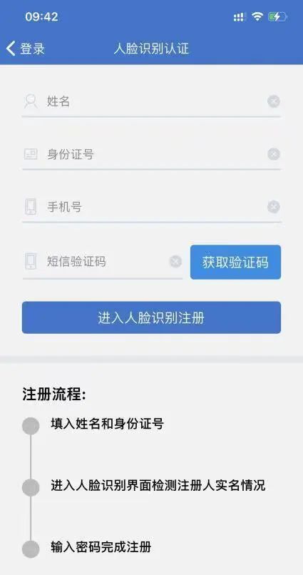 使用人脸识别方式注册时,完成指定动作后,请等待片刻不要退出,手机将会显示注册结果。注册通过后,需设置或修改登录密码,并返回登录页面,使用身份证号和密码登录。
