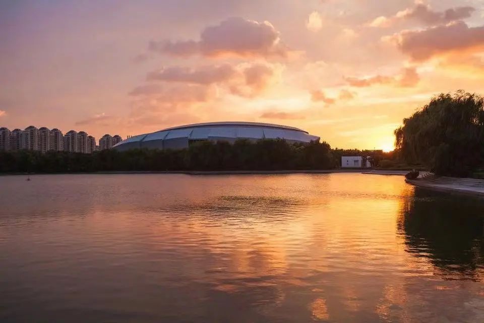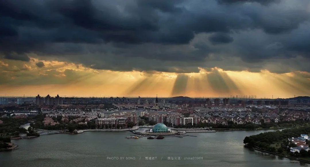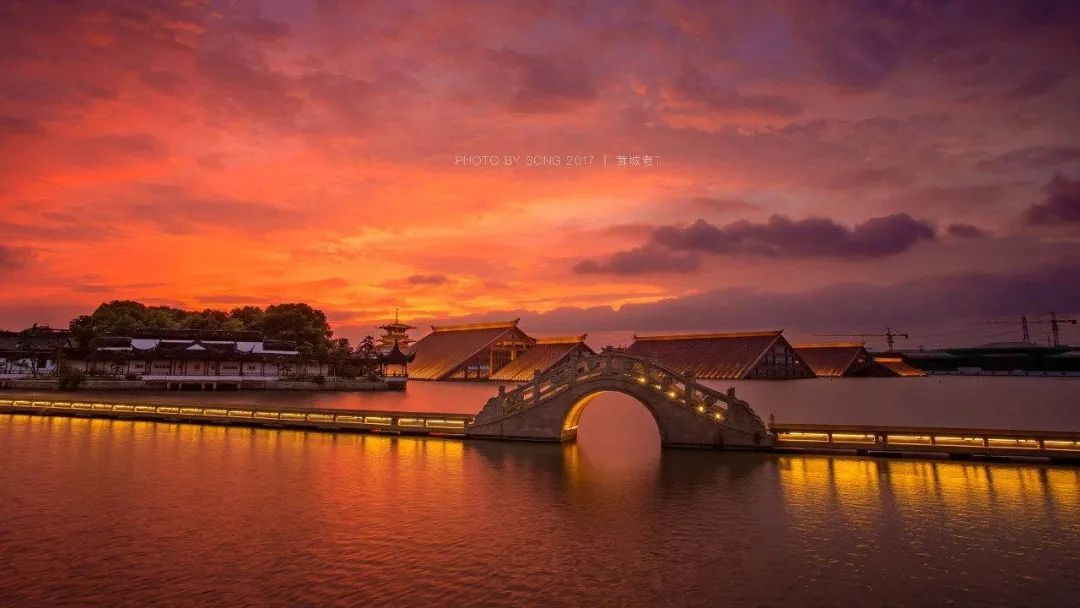 富林湖也是松江赏落日的绝佳之处,万丈霞光铺满湖面,朵朵青山隐于天边,看那红日,从富林塔尖缓缓移下,直至没入水间,不禁有“观古今于一瞬”的感觉。而后,夜幕降临,华灯初上,美轮美奂的音乐喷泉从湖面升腾而起,眼前此景,便是盛世的容颜。