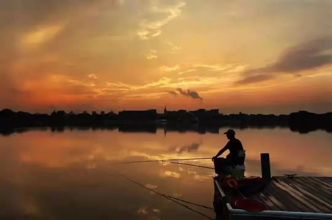 每当夕阳西下,湖面金光粼粼,白鹭掠水而去,钓者静坐波里,一人、一竿,此情此景,尽是诗意。