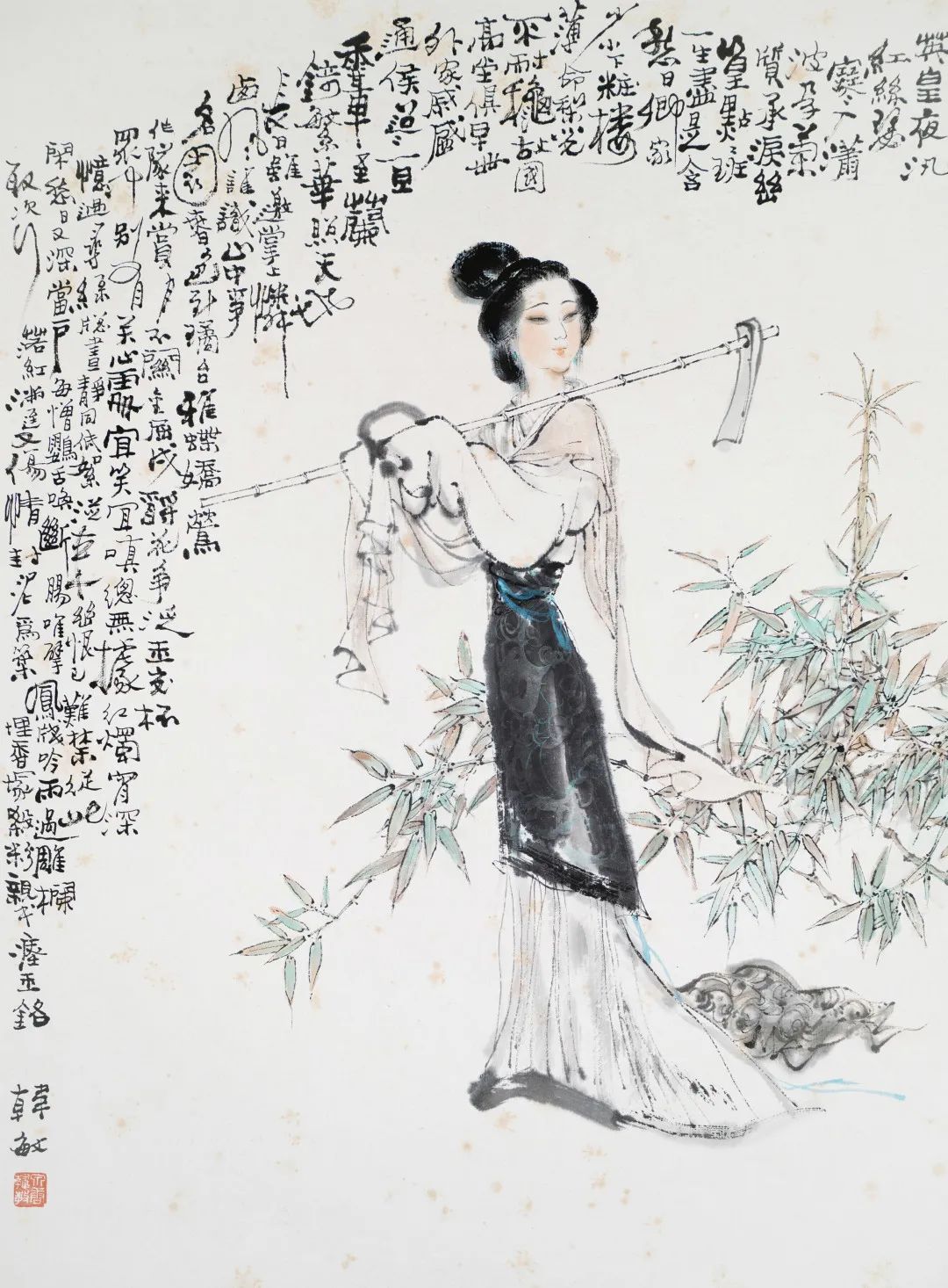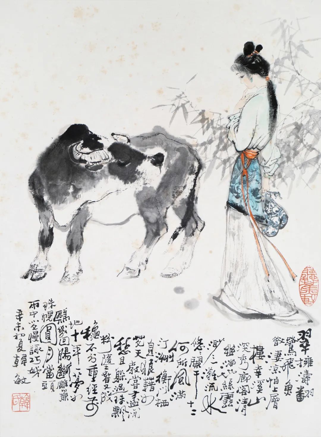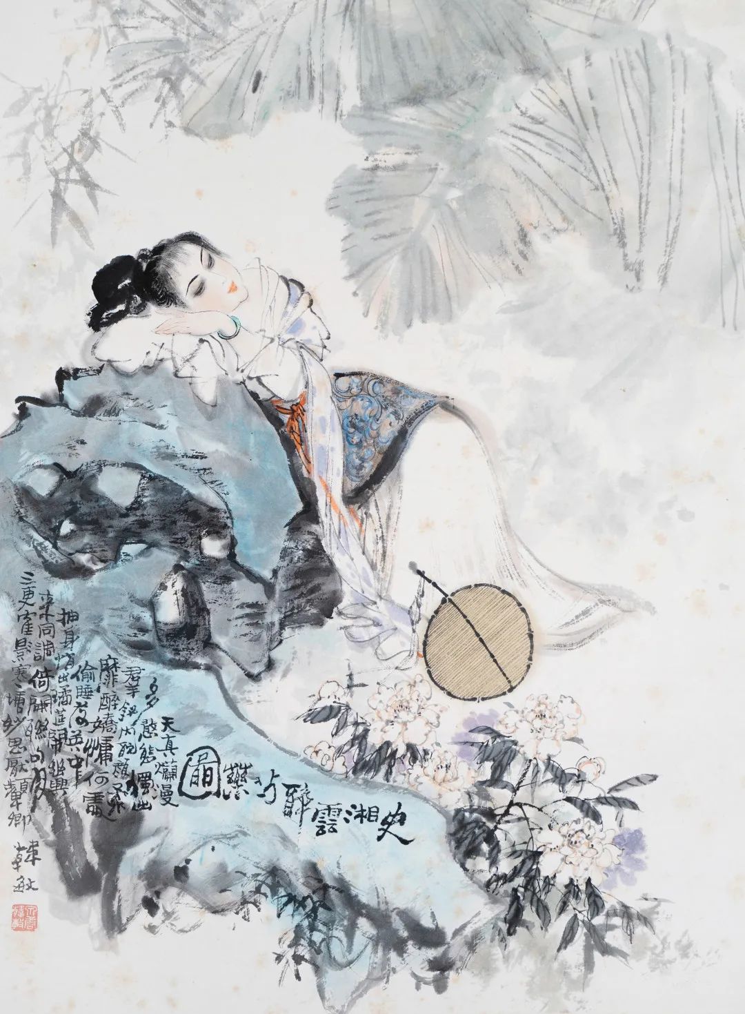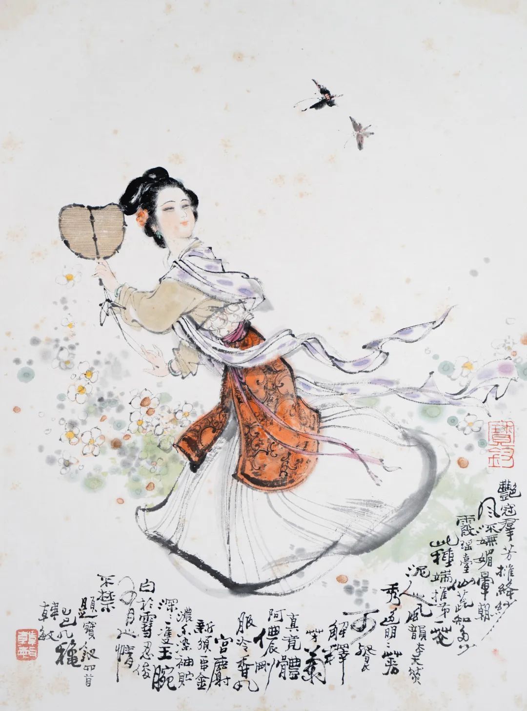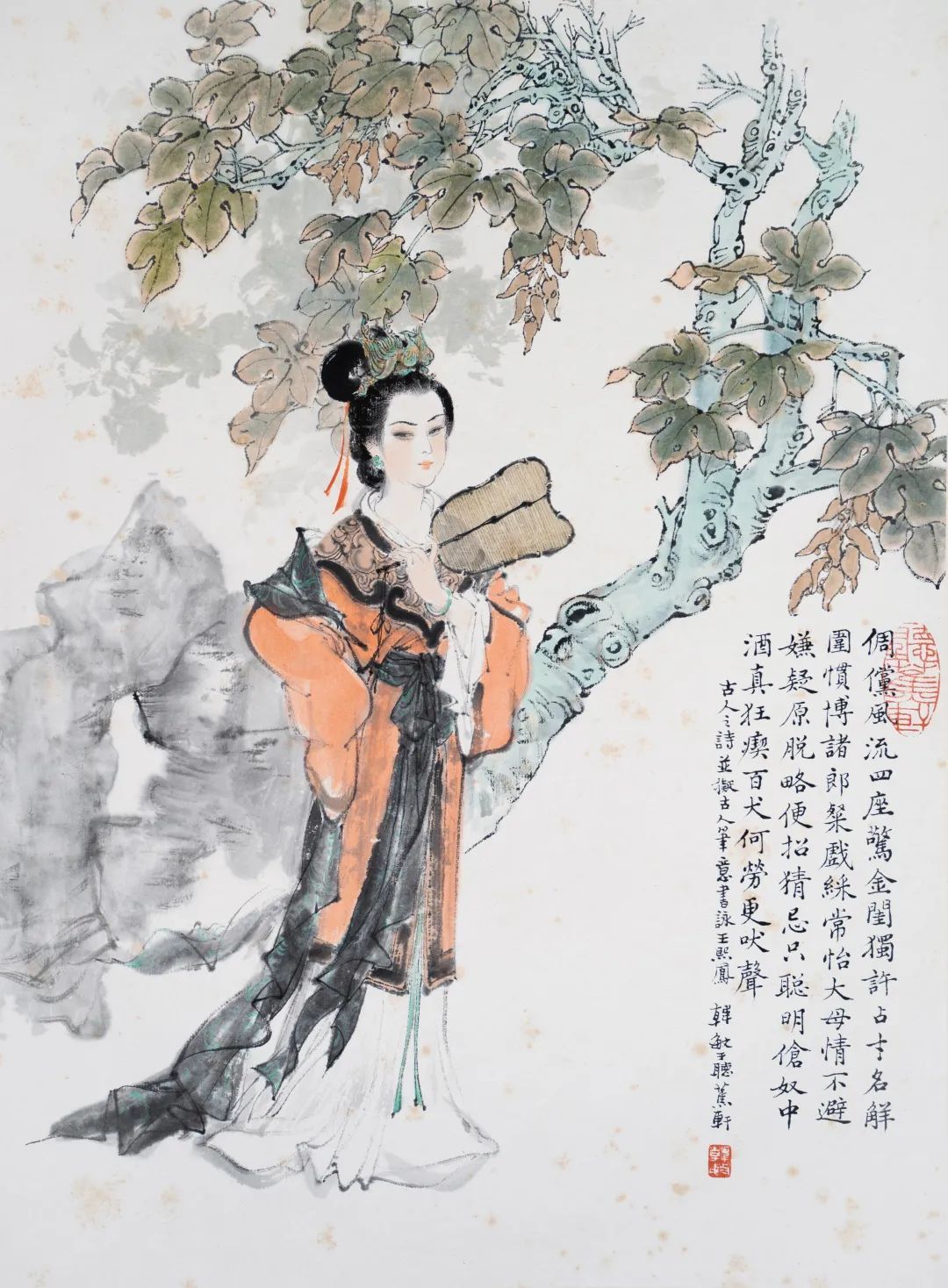 左右滑动查看:韩敏,金陵十二钗图册(局部),纸本设色,45×35.5cm×12,摄影:韩小易,私人收藏,龙美术馆提供